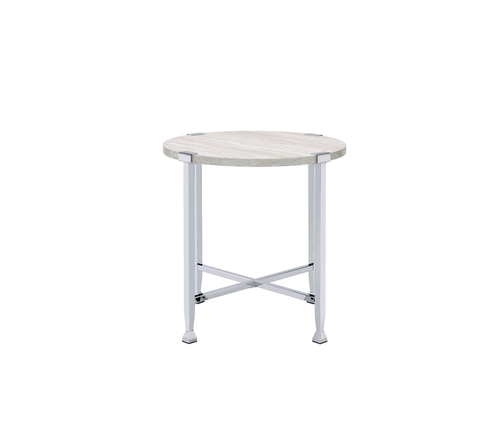 Elevate Your Living Space with the Brecon White Oak & Chrome Finish End Table