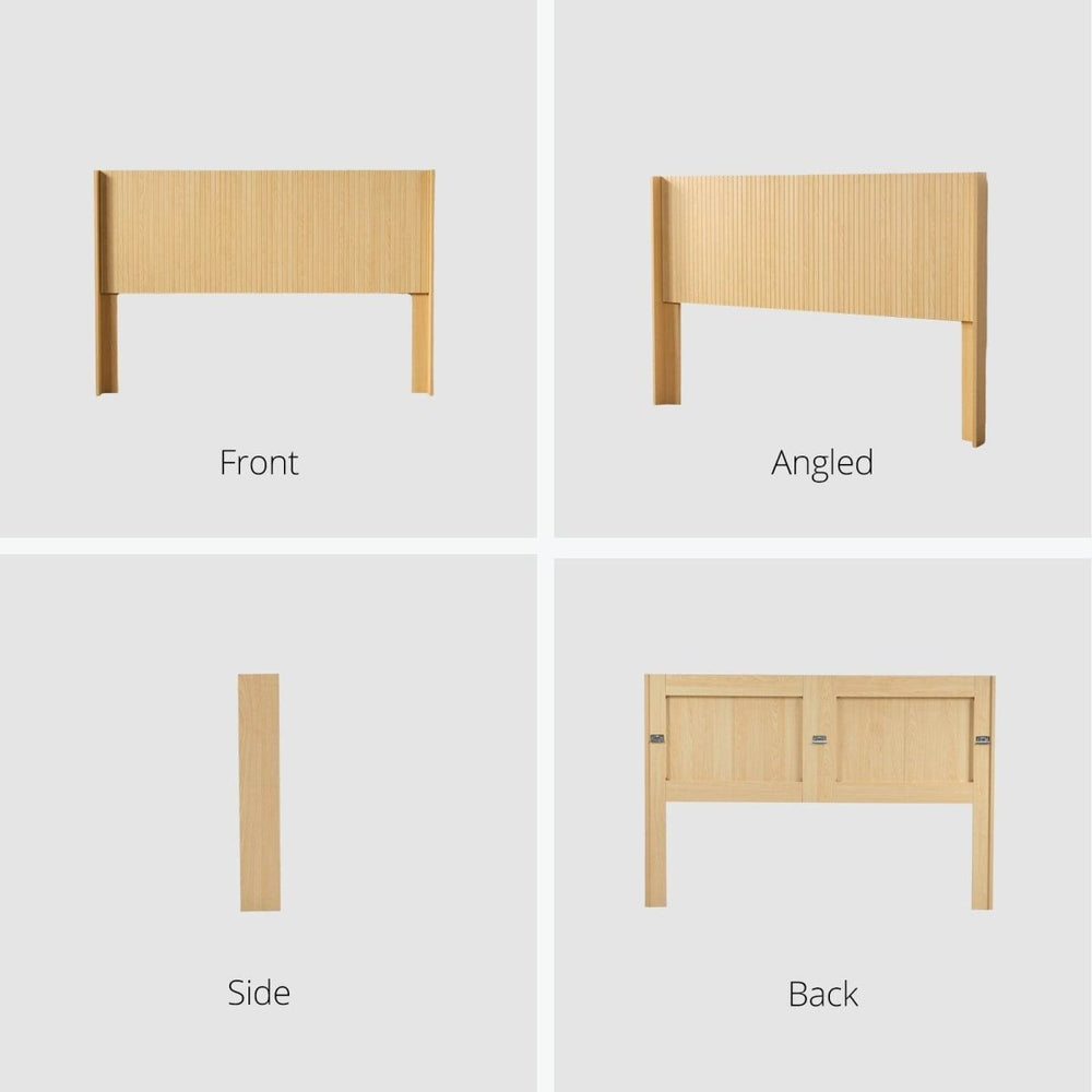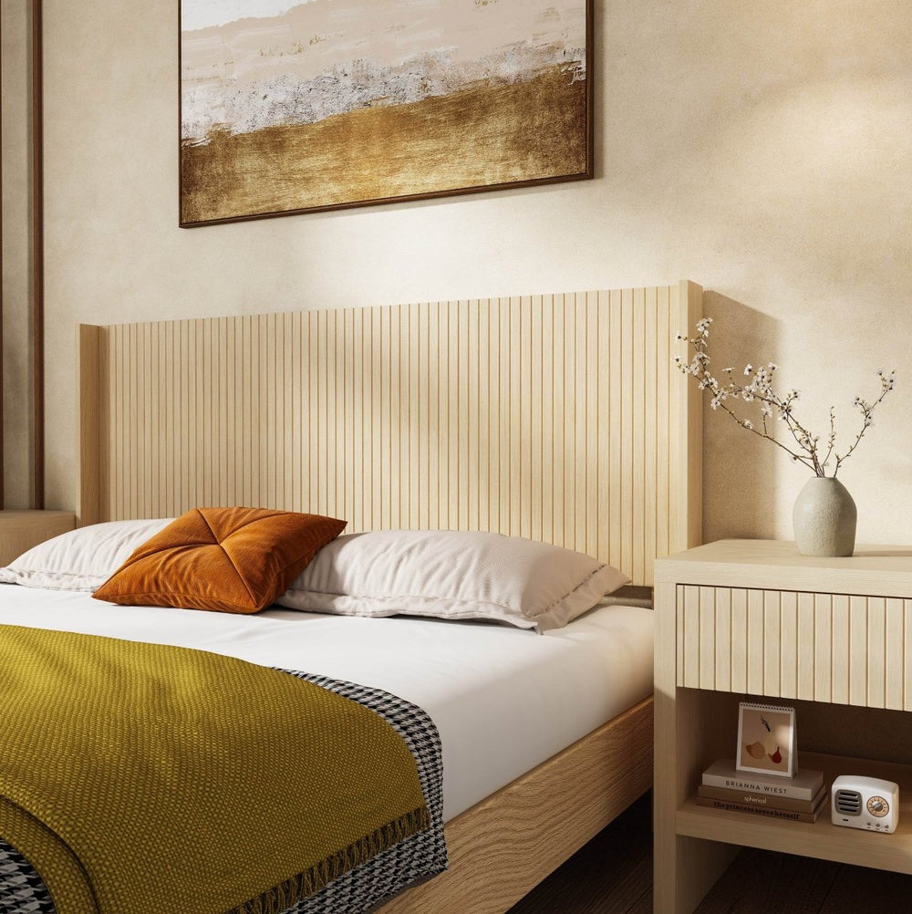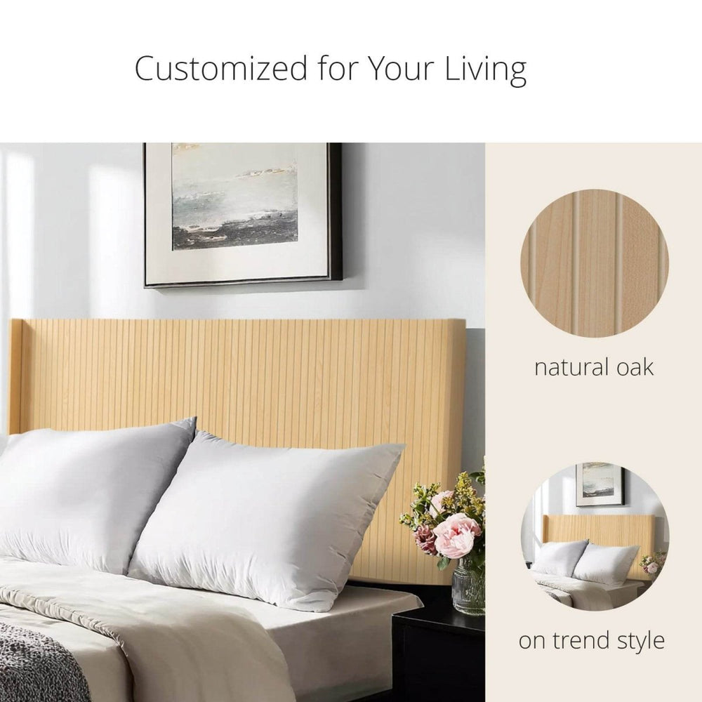 Light Natural Solid Wood Queen Wingback Fluted Panel Headboard - Omega Lifestyles