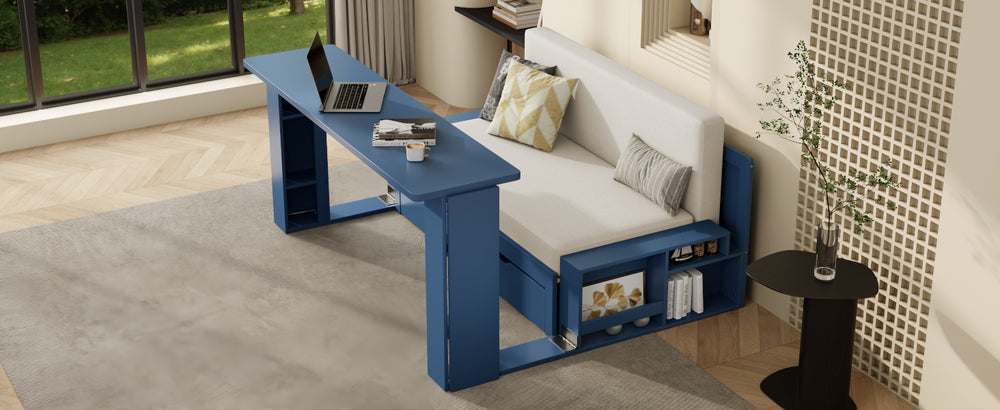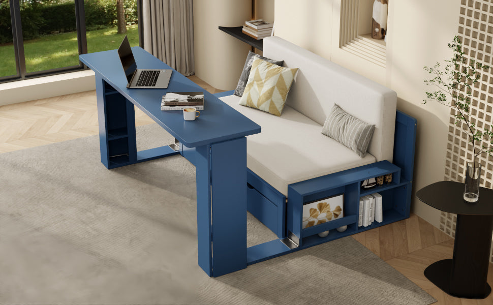- 4-in-1 Multifunctional Design: Sofa, bed, desk, and storage all in one compact unit.