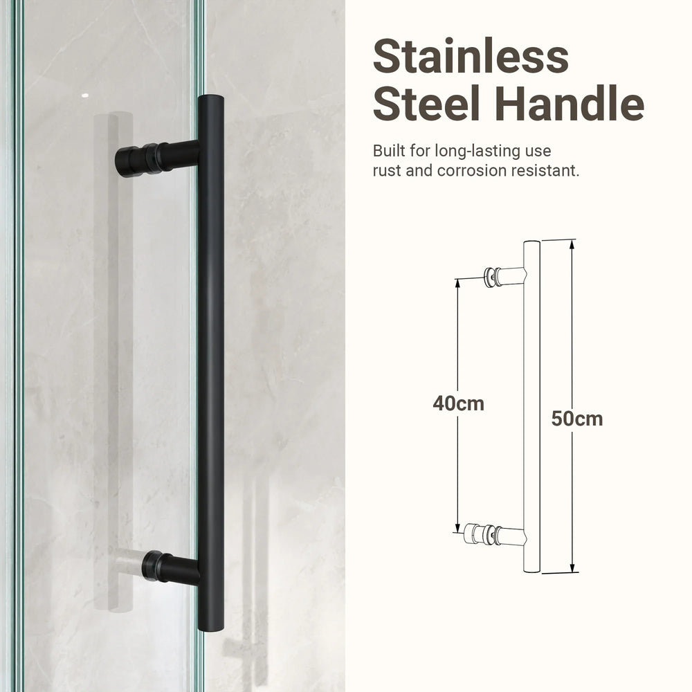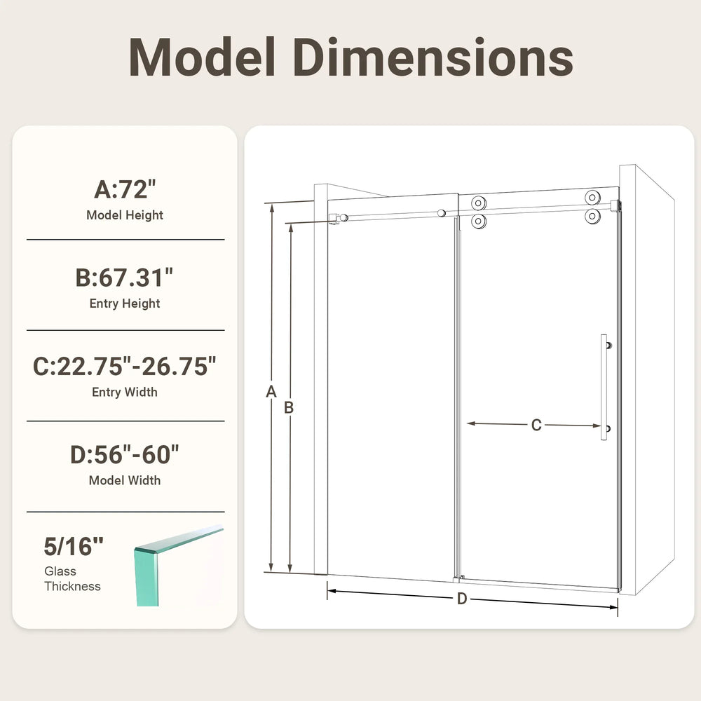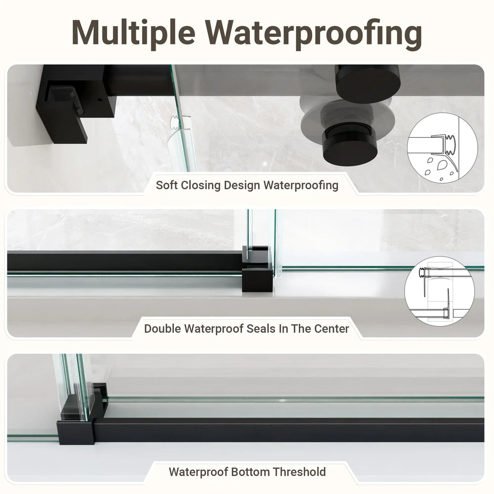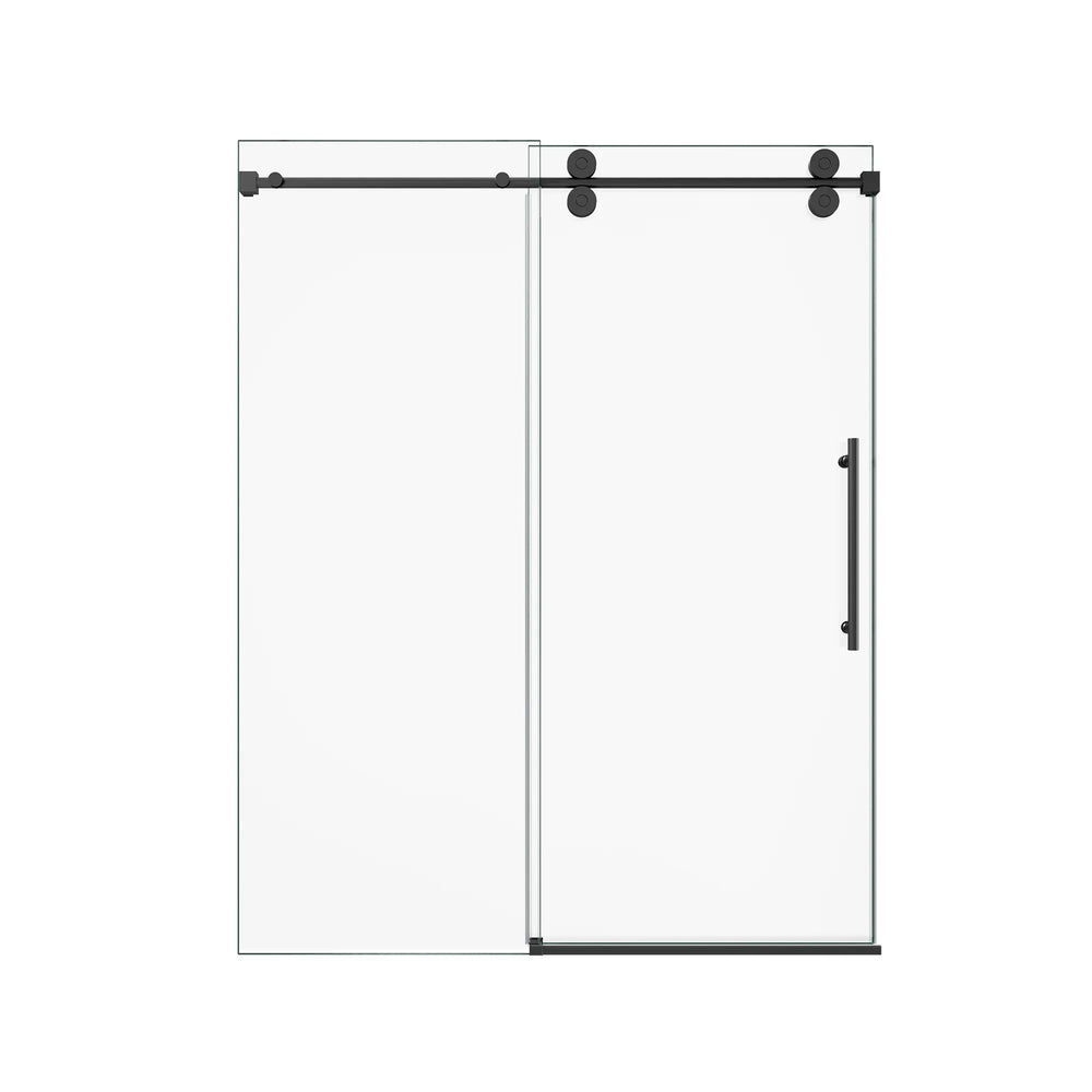 Upgrade your bathroom with this stunning frameless single sliding shower door, featuring crisp 5/16-inch (8mm) clear tempered glass and a contemporary matte black finish. Its borderless design creates a spacious, open feel while eliminating hard-to-clean edges for hassle-free upkeep. Engineered with premium 304 stainless steel rollers and an advanced anti-detachment system, it offers smooth and whisper-quiet operation. The durable round track with integrated water drainage protects against corrosion and mineral buildup, ensuring long-lasting performance. Complete with double waterproof sealing, this shower door keeps your bathroom dry and quiet during use. Designed with ergonomic stainless steel handles, this 60-inch wide by 72-inch high door brings both style and practicality to your space. Elevate your bathroom today with this sophisticated and reliable sliding shower door solution.