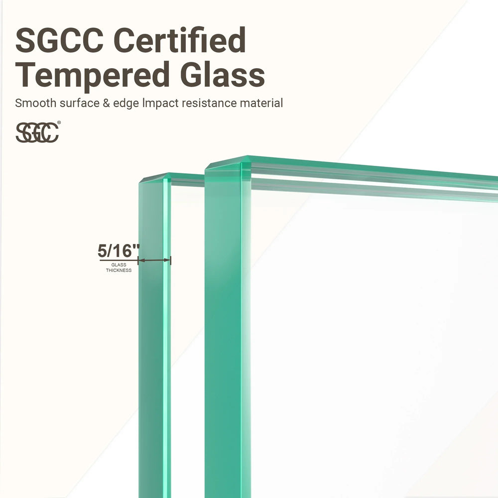 - 5/16-inch (8mm) Clear Tempered Glass: Certified safety glass provides thermal and shock resistance
