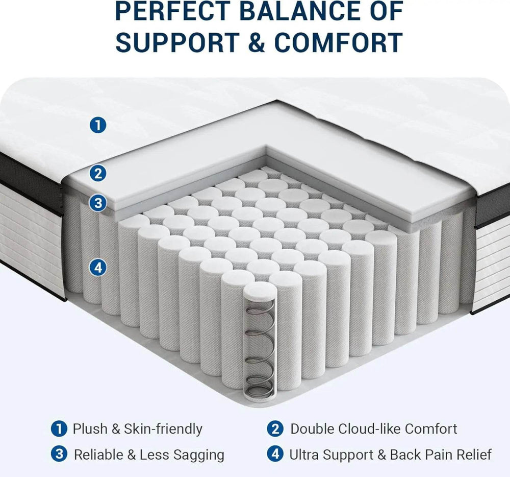 Quiet Sleep & Motion Isolation - Designed with individually wrapped coils and high-density foam, this hybrid mattress effectively absorbs motion and minimizes noise, providing a peaceful sleep experience. Enjoy uninterrupted rest, as movement is isolated to prevent disturbances—ideal for couples and light sleepers.