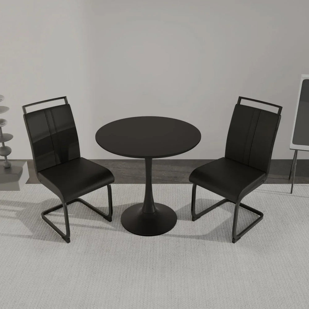 - Complete Set: Includes 1 round table and 2 black PU leather dining chairs.