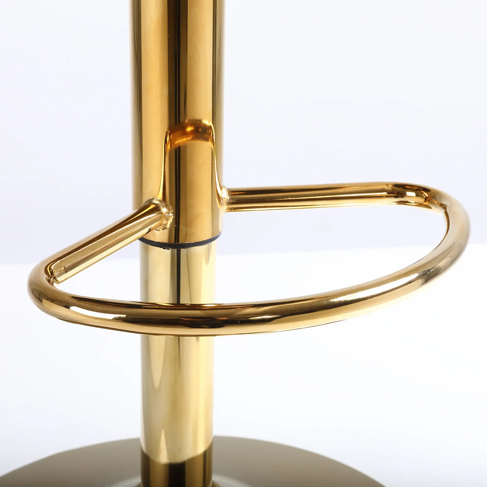 Omega Lifestyles velvet bar chair features 360-degree rotation, adjustable height, and high-density foam cushioning with a footrest for lumbar support. Stylish and stable with a non-slip base, ideal for dining rooms, bars, and kitchen seating.