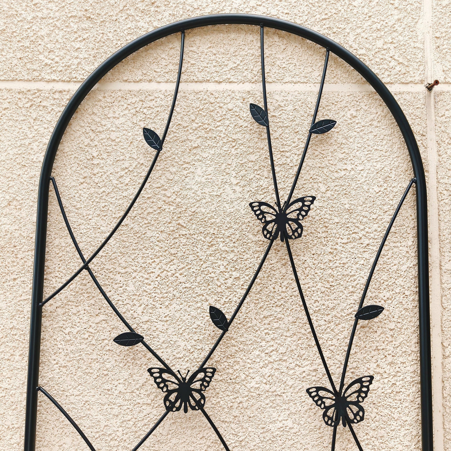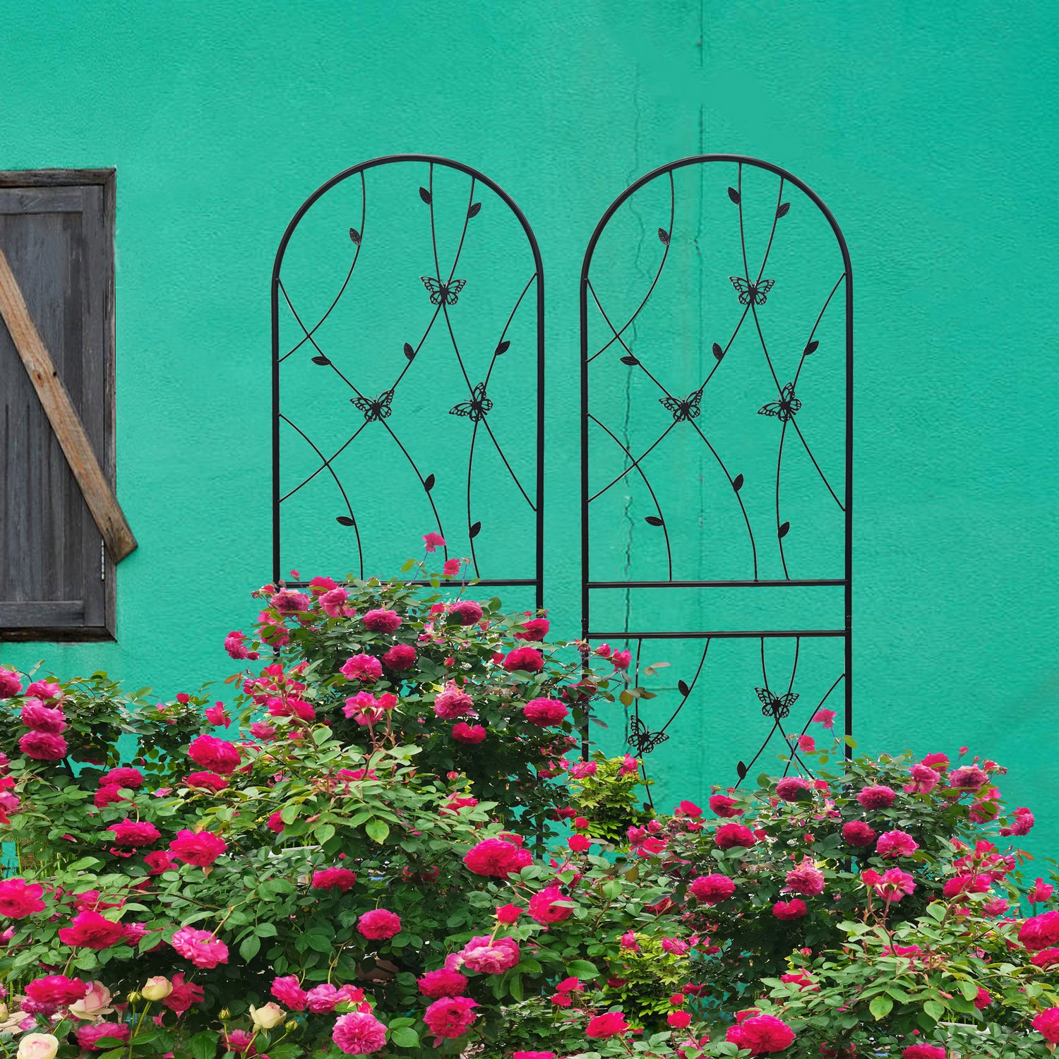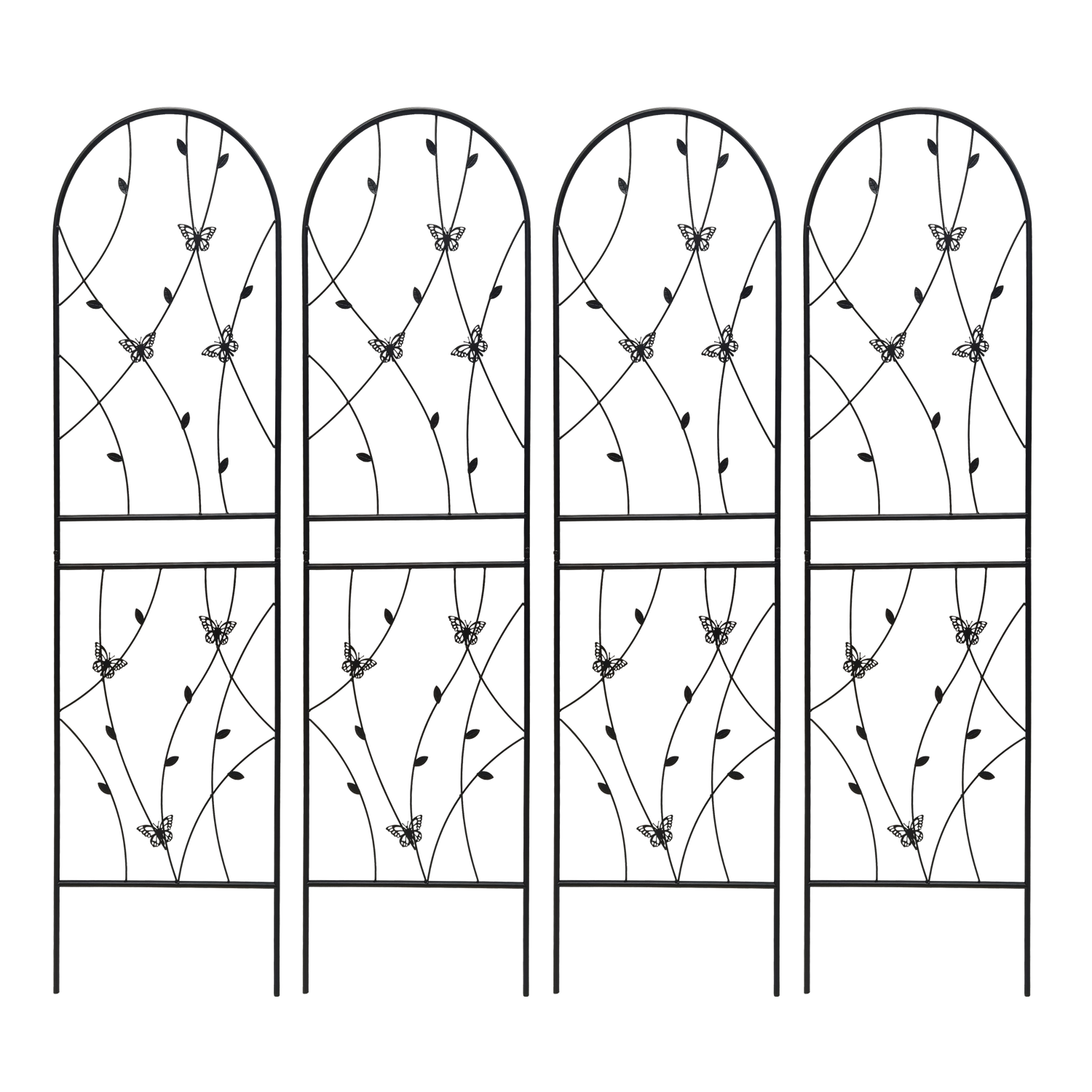 Support your climbing plants effortlessly with this 2 pack of metal garden trellises, designed for outdoor use and crafted from sturdy iron with a rustproof black powder-coated finish. Standing 71 inches tall and 19.7 inches wide, these trellises provide the perfect framework for vines, roses, cucumbers, and more, helping your plants grow upward elegantly while adding a stylish butterfly-inspired decorative touch. Easy to assemble thanks to pre-drilled holes, these lightweight yet strong trellises resist the elements and keep your garden organized year-round. Whether used individually or combined to form a screen or corner, they bring both function and beauty to your outdoor space. Elevate your garden’s growth and appearance today.