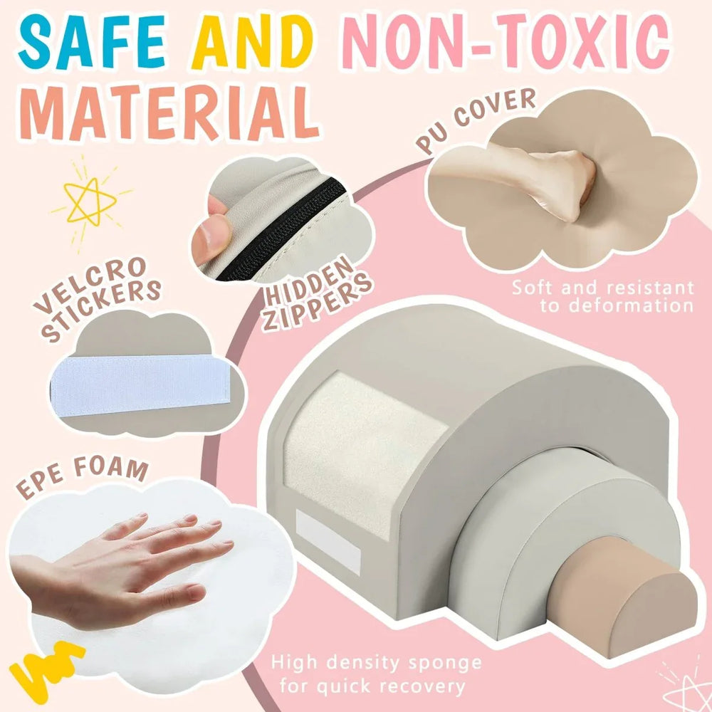 This colorful kids climbing toy set features soft PU foam and a skin-friendly surface, promoting safe crawling and physical development for toddlers aged 1 to 2 years. Lightweight and ideal for indoor play to stimulate imagination and motor skills.