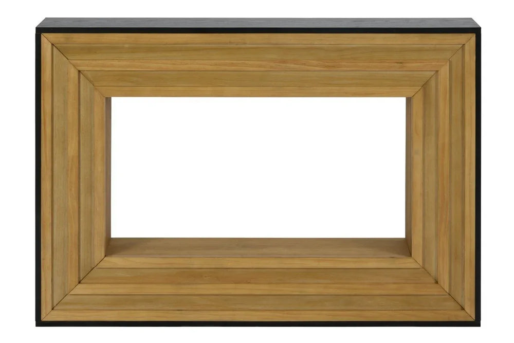 Make a bold statement with this Modern Contrast Console Table featuring a layered wood frame and sleek black top. Crafted from durable MDF with natural wood tones, its unique layered design adds depth and architectural interest to any entryway or living space. The striking contrast between the warm wood and refined black surface blends contemporary style with natural elements, creating a sophisticated focal point. Perfect for displaying decor or keeping essentials within reach, this console table combines style and function effortlessly. Measuring 47.24 inches long, 7.87 inches wide, and 31.49 inches high, it fits well in narrow or tight spaces, adding versatility without sacrificing presence. Upgrade your living area with this modern accent piece and bring a refined touch of craftsmanship home today.