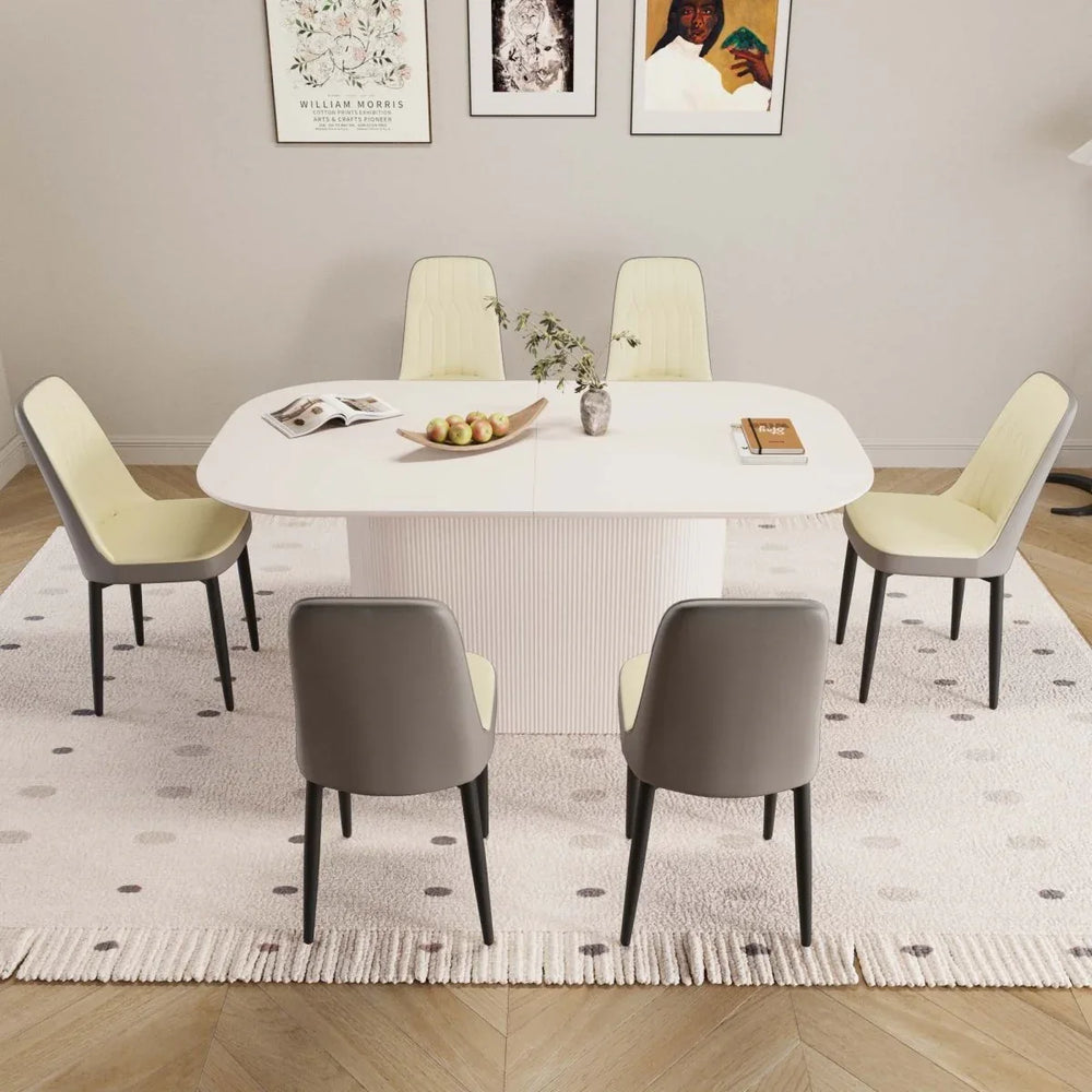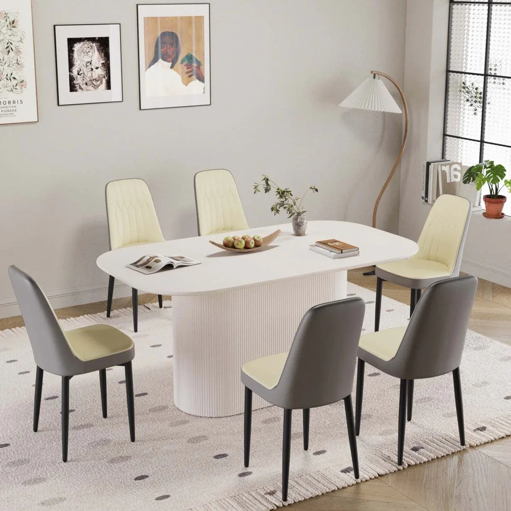 • Complete Set: Includes 1 MDF dining table and 6 PU upholstered chairs.
