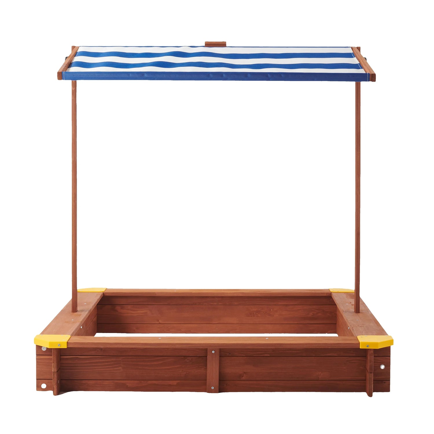 Wooden Kids Sandbox With Adjustable Canopy And Black Liner