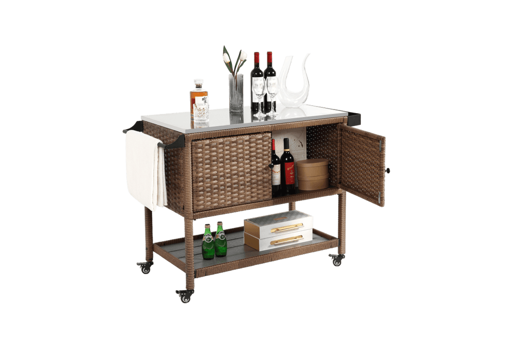Elevate Your Outdoor Entertaining with Our Rolling Wicker Bar Cart