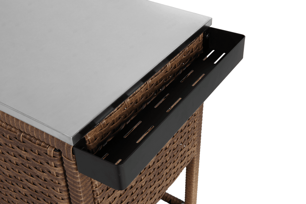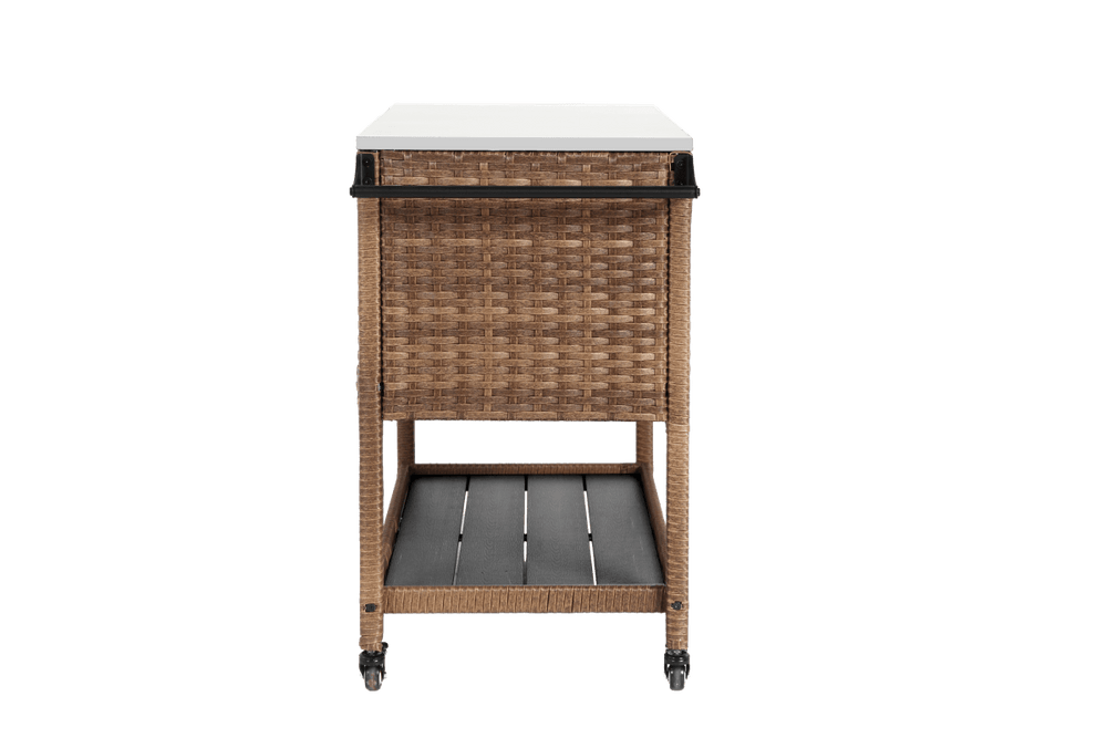Outdoor Wicker Bar Cart With Stainless Steel Tabletop - Omega Lifestyles