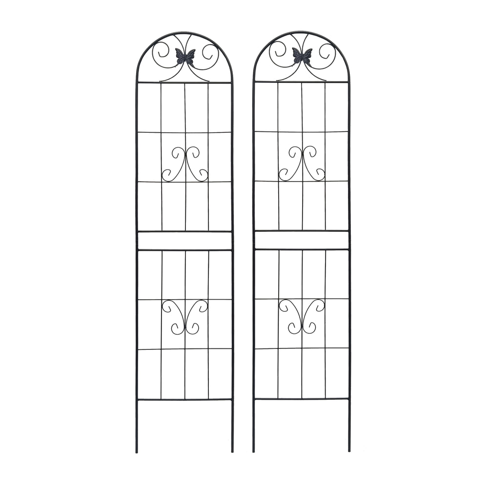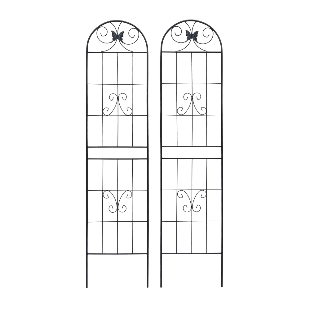 Durable black iron garden trellis set offers rustproof support for climbing plants like ivy, roses, and beans. Easy to assemble with pre-drilled holes, ideal for outdoor garden use to enhance plant growth and create natural privacy screens.