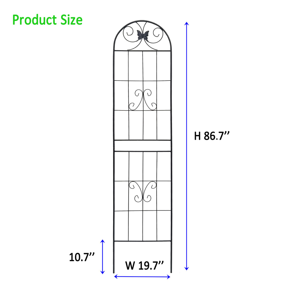 Support your climbing plants and flowers effortlessly with this 4 pack of rustproof metal garden trellises. Each trellis measures 19.7 inches wide by an impressive 86.7 inches high, providing ample vertical space for vines, roses, jasmine, and more to flourish. Made from sturdy iron with a protective powder-coated finish, these trellises resist rust and weather damage, ensuring long-lasting outdoor use season after season. The pre-cut and pre-drilled design allows for easy, single-person assembly, so you can quickly expand your garden’s visual appeal and greenery. Perfect for creating privacy screens or corner supports, these versatile trellises combine functionality with garden aesthetics. Elevate your outdoor space and help your plants grow strong today.
