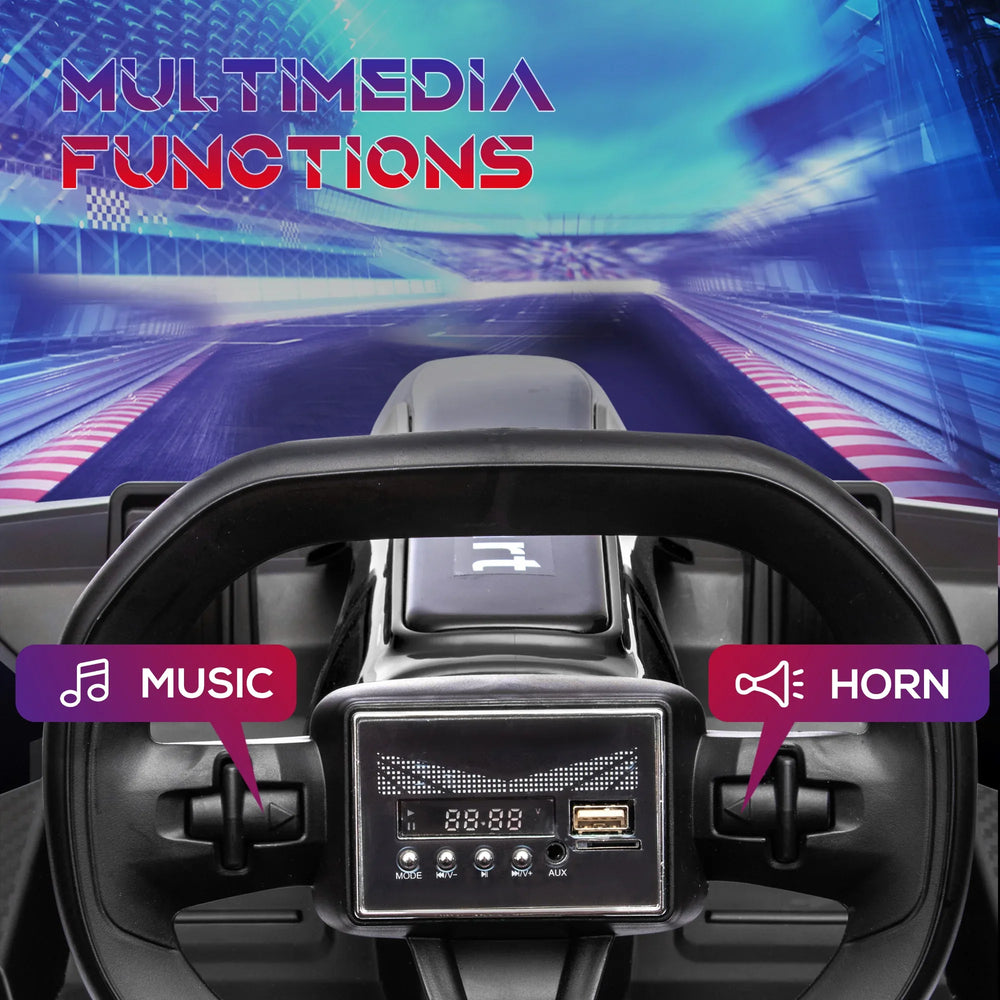- Realistic Driving Experience: Includes horn, music control buttons, and dashboard display lights.