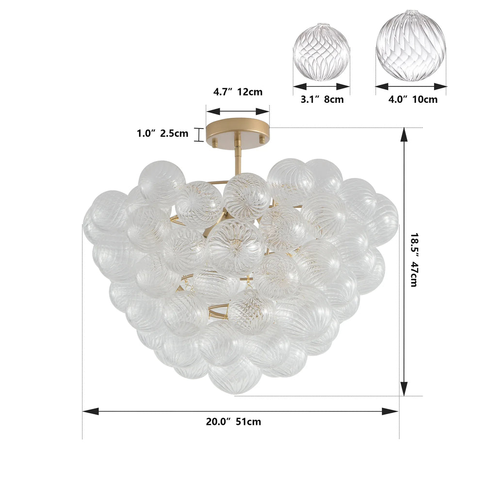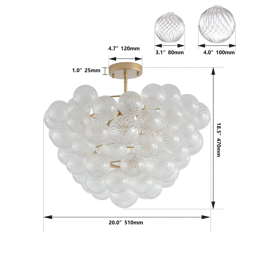 20-inch gold ceiling pendant light features iron construction with a threaded clear glass globe shade, delivering warm, even illumination. Ideal for living rooms, dining rooms, and kitchens, it suits modern, minimalist, and industrial decor with easy ceiling installation.