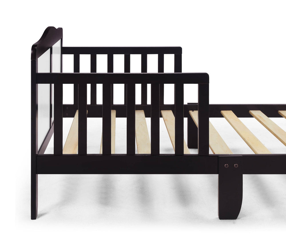 Solid Wood Espresso Toddler Bed With Safety Rails