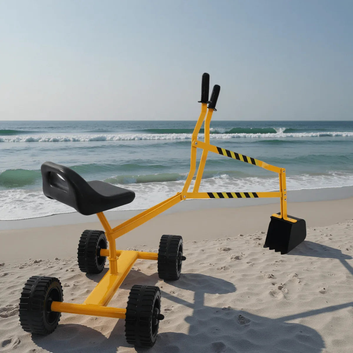 This yellow iron toy excavator features an interactive bucket controlled by the handle to simulate real digging, enhancing hand-eye coordination. Its sturdy metal frame with anti-slip feet ensures stability and safety, designed for outdoor play in sandpits and courtyards.