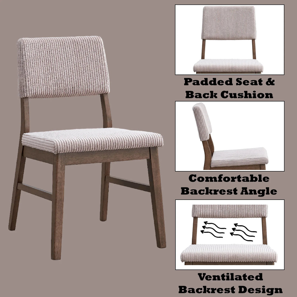 Omega Lifestyles padded side chair features a Scandinavian design with corduroy upholstery and walnut-finish synthetic wood, offering comfort and style for living spaces. Foam density D24 supports up to 220 lbs, ideal for home seating and relaxation.