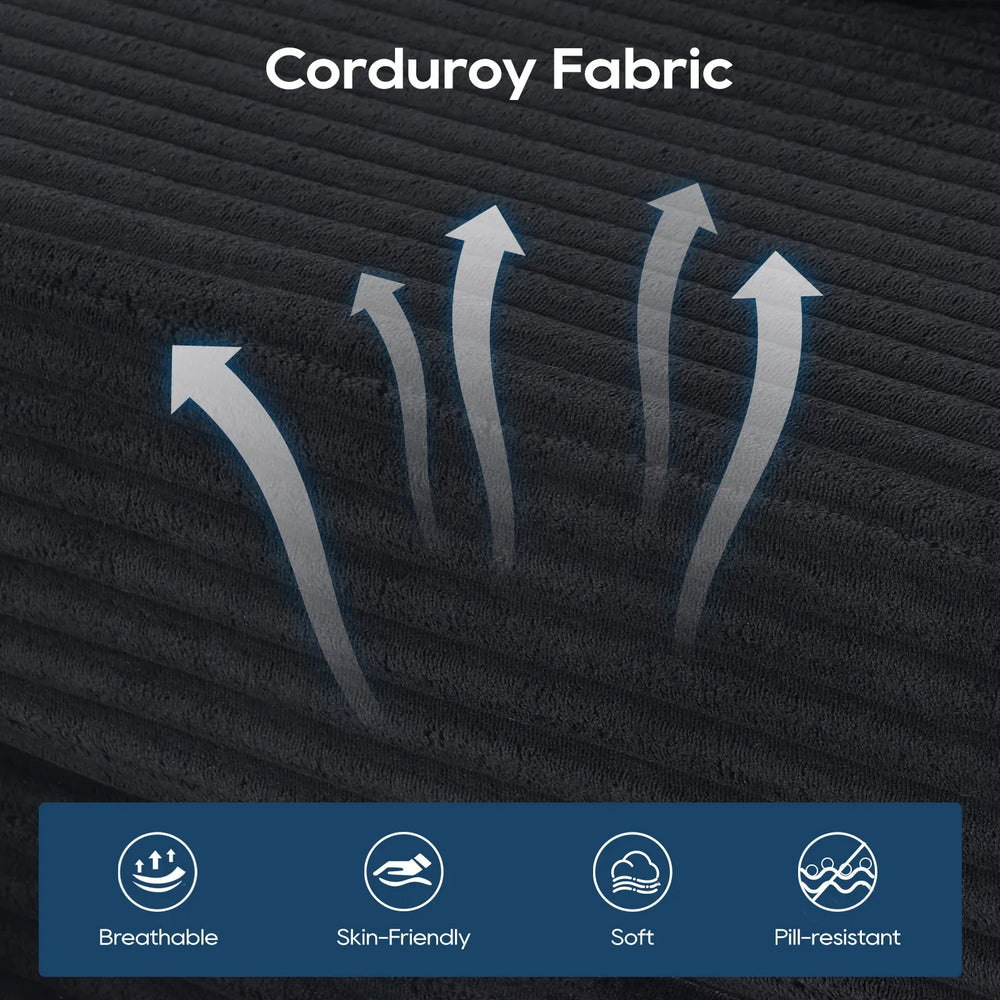 - Luxury Black Corduroy Fabric: Soft, stain- and scratch-resistant for high-traffic use.