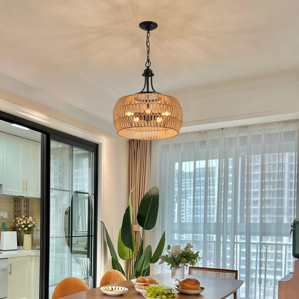 - Hand-Woven Natural Hemp Rope Shade: Creates a warm, rustic texture and inviting atmosphere.