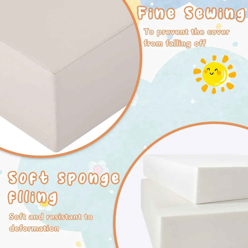 This colorful indoor Kids Crawling and Climbing Soft Playset features high-quality EPE foam with a soft, skin-friendly surface, including mats and climbing shapes with Velcro straps for secure stacking, promoting active play and safe motor skill development.