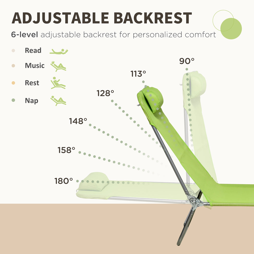 Experience ultimate comfort and convenience with this green outdoor lounge chair set, perfect for poolside tanning, beach days, or backyard relaxation. Crafted with durable steel frames and breathable mesh seats, these chairs stay cool and dry quickly, even after a swim. The adjustable backrests offer six reclining positions from upright to fully flat, allowing you to find your perfect sunbathing angle. Lightweight and foldable, they’re easy to transport and store, making them ideal for spontaneous outdoor adventures. Each chair includes a comfortable headrest pillow for added support, enhancing your relaxation experience. Upgrade your outdoor furniture and elevate your leisure time today.