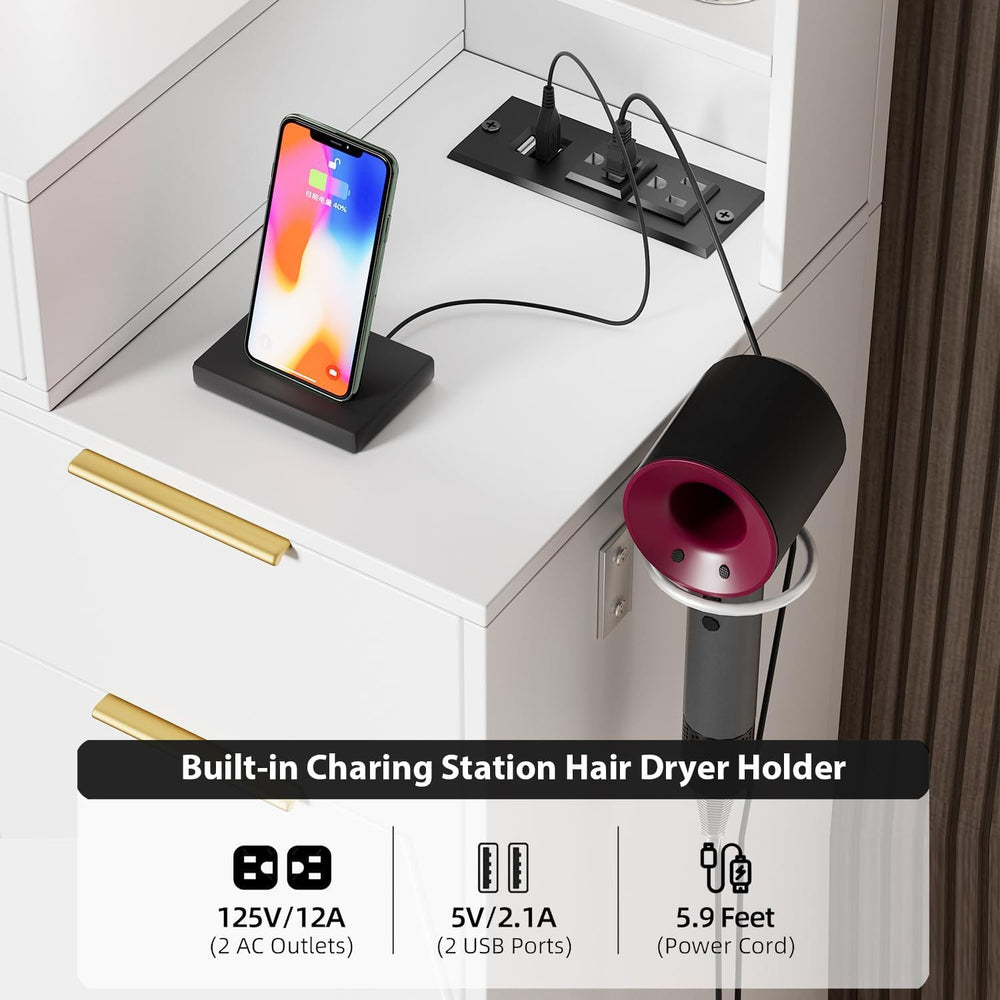 - Spacious 59-Inch Vanity Table: Provides ample surface for makeup and accessories.