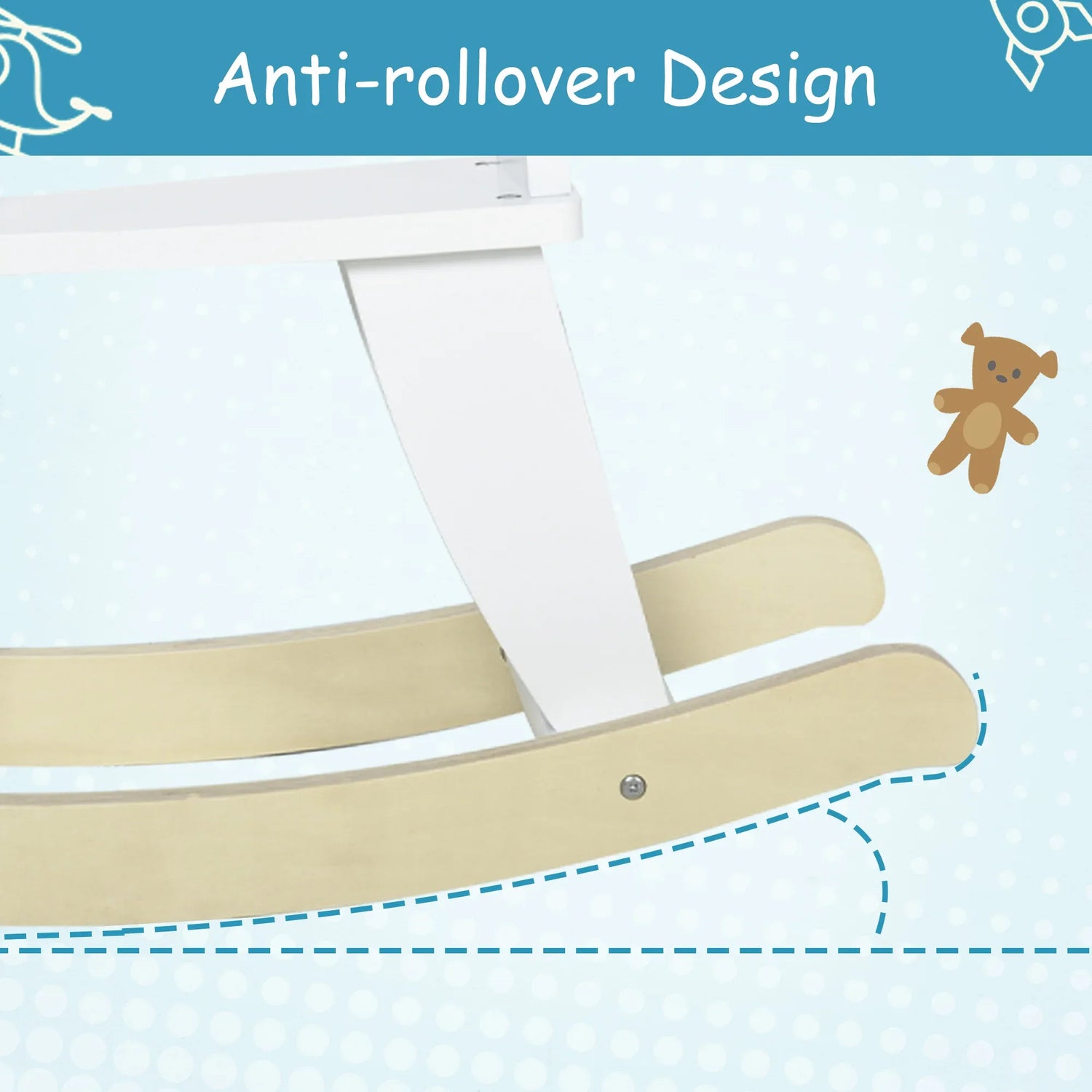 Delight your little one with this beautifully crafted wooden rocking horse designed for toddlers aged 1 to 3 years. Its smooth, white finish and solid wood construction ensure both style and durability, making it a timeless addition to any playroom. The gentle rocking motion encourages active play that strengthens core muscles and improves balance and coordination. Thoughtfully designed with child-safe rounded edges, sturdy handrails, pedals, and a supportive backrest, this ride-on toy offers a secure and comfortable experience. Easy to assemble and clean, it measures 26.75 inches long by 10.5 inches wide and 19 inches high, supporting up to 66 pounds of weight. Make playtime memorable and fun—elevate your child’s early development today.