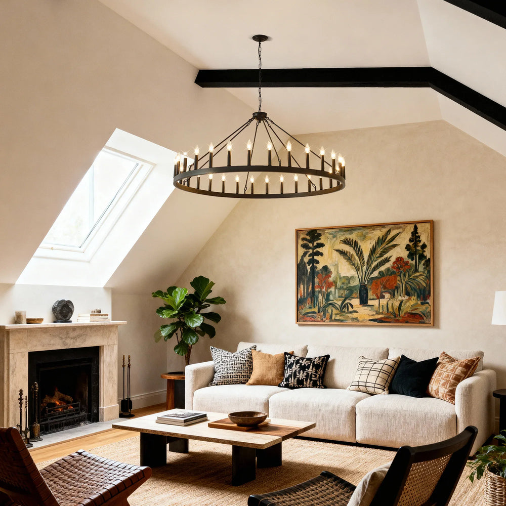 Elevate Your Living Space with the Matte Black Wagon Wheel Chandelier