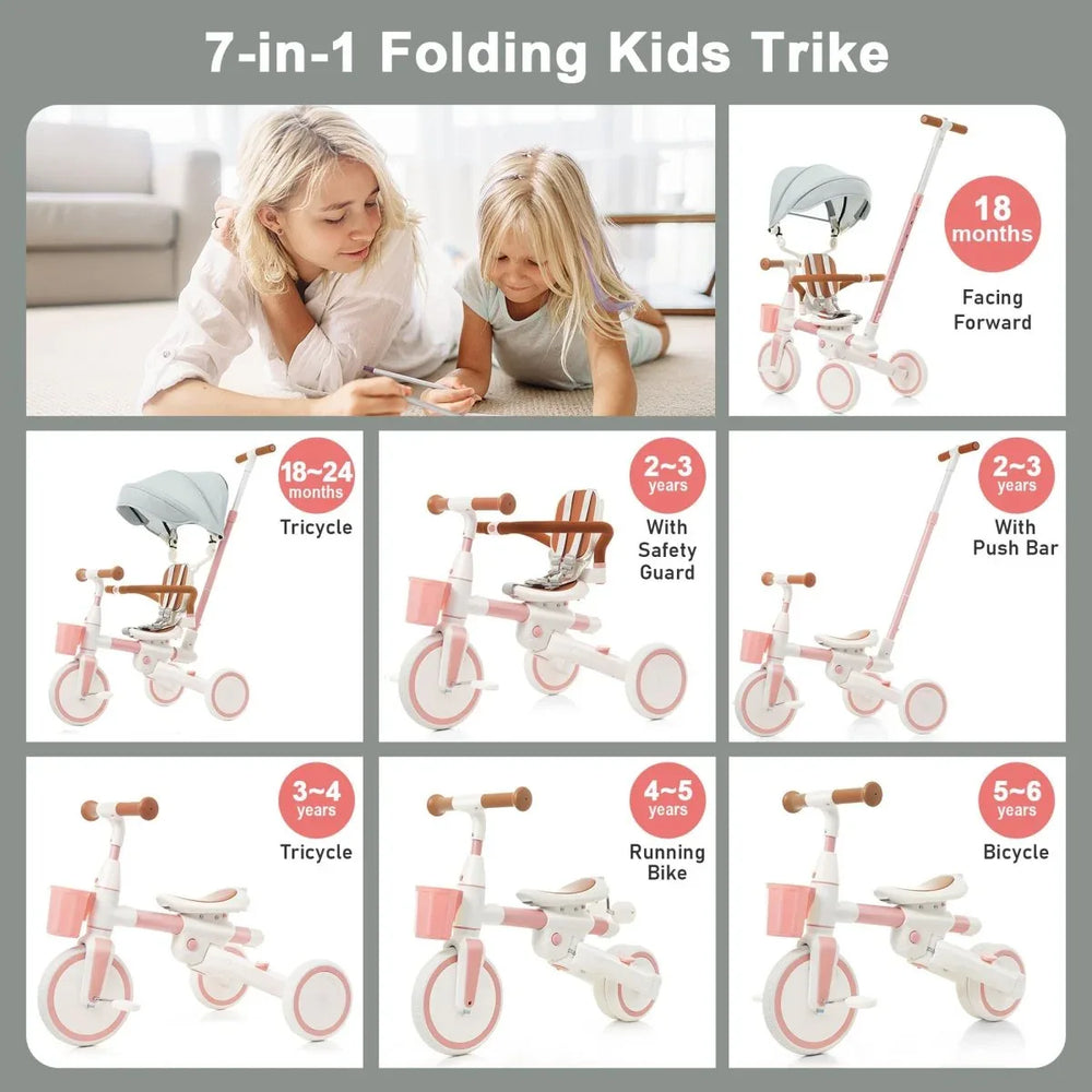 7-in-1 Multifunctional Adjustable Aluminum Baby Tricycle