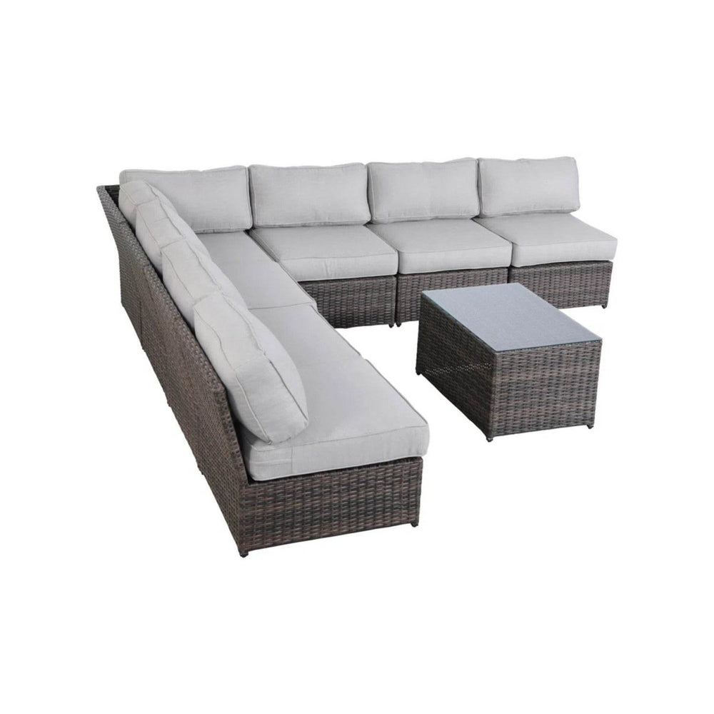 6-Person Handwoven Wicker Outdoor Seating Group With Cushions is backordered and will ship as soon as it is back in stock.