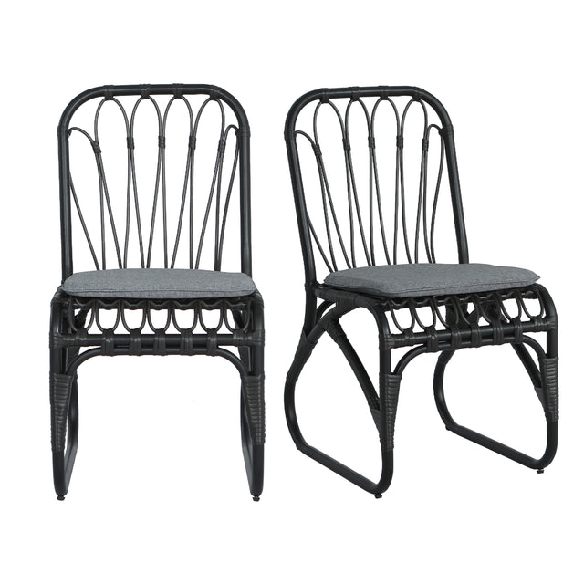 Set of 2 Hand-Woven PE Rattan Outdoor Dining Chairs