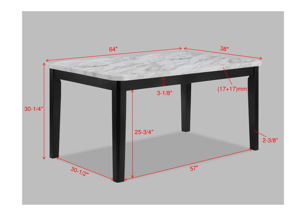 - Rectangular Table: Measures 64" long, 38" wide, and 30.3" high for ample dining space.