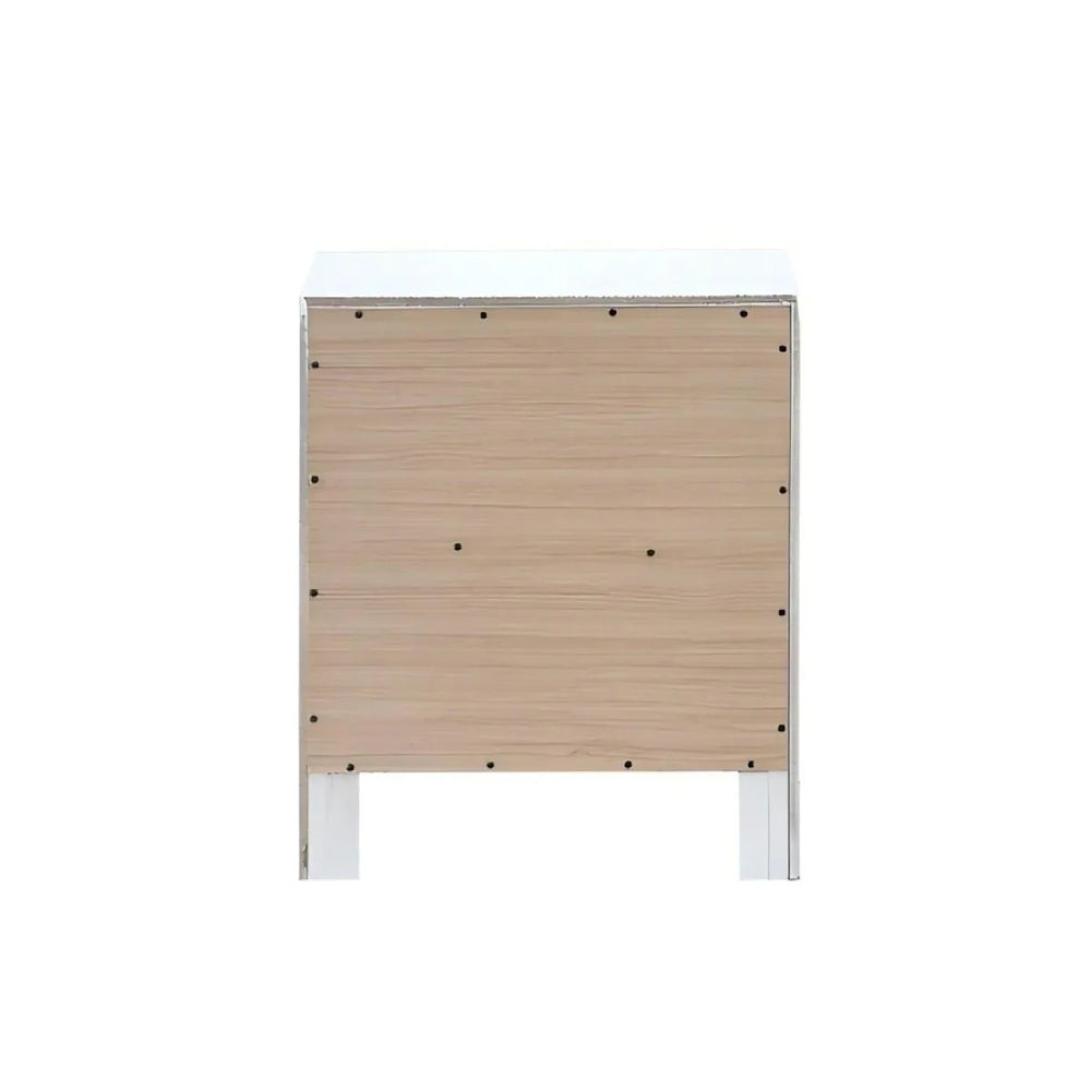 White Wood V Shape Embossed 2 Drawer Nightstand