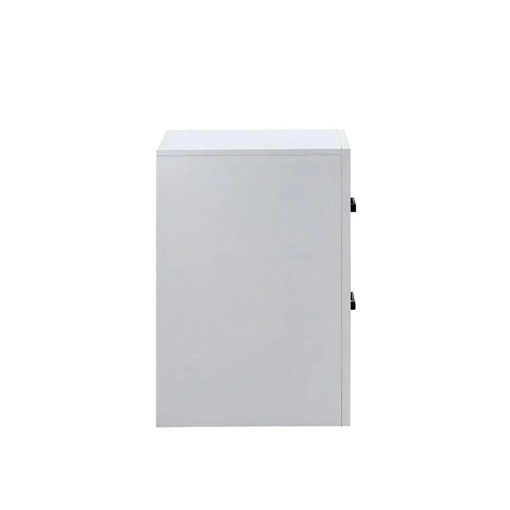 Elevate your bedroom organization and style with this expertly crafted white nightstand. Made from a durable blend of solid and manufactured wood, it offers both sturdiness and a sleek, modern look. The distinctive V-shaped embossing on the drawer fronts adds a touch of elegance, while two spacious drawers provide ample storage for nighttime essentials. Fully assembled and ready to use, this compact nightstand fits perfectly beside any bed, offering convenience and a clean aesthetic. Its smooth, dovetailed drawer guides with safety stops ensure quiet and secure operation every time. At just 24 inches high, 20 inches long, and 16 inches wide, this piece balances function with space-saving design. Refresh your bedroom setup today with a nightstand that combines strong craftsmanship, style, and practical storage.