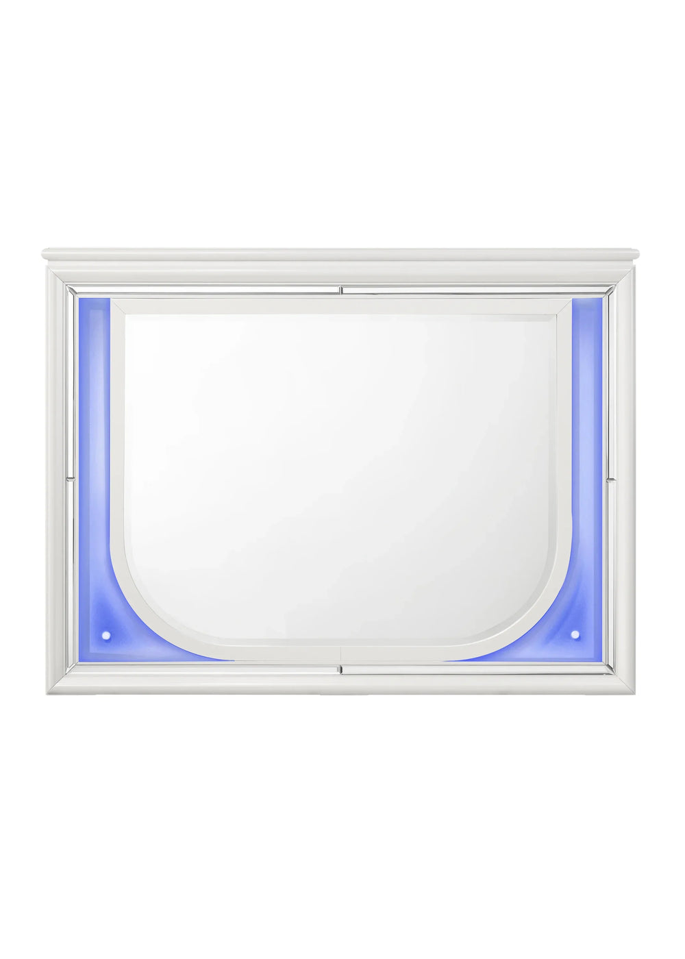Elevate your living space with the Tarian Pearl White Finish Mirror featuring built-in LED lighting, designed to blend modern elegance with practical illumination. The sleek white synthetic wood frame surrounds a large 34" by 26" mirror that reflects light beautifully and adds depth to any room. Soft LED lights integrated into the frame create a warm, relaxing ambiance perfect for bedrooms, dressing areas, or hallways. Crafted with durable solid wood, MDF, and particle board, this mirror promises long-lasting quality and visual appeal. Its sophisticated mirror trim inlay adds a distinctive texture and refined finish, making it a statement piece that complements contemporary décor. At just 36 inches tall and 47 inches wide, it fits seamlessly into your space without overwhelming. Brighten your surroundings and add style with this versatile illuminated mirror. Elevate your home’s atmosphere today.