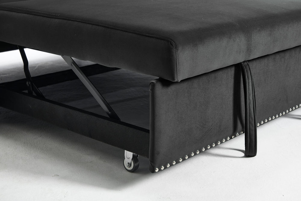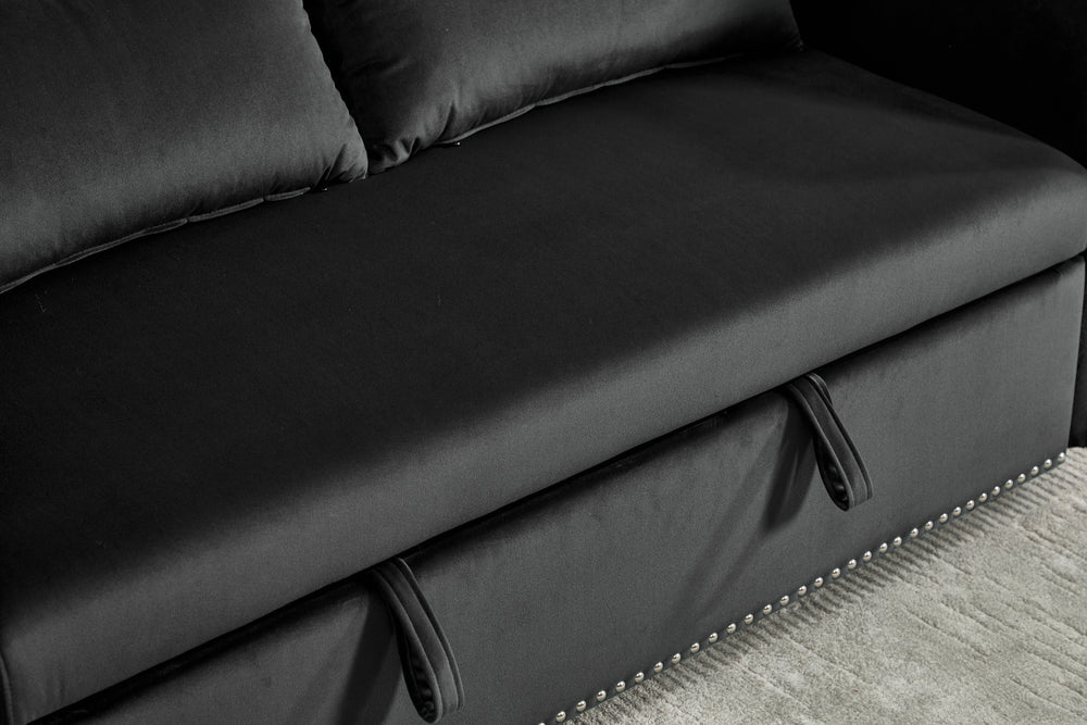 • Premium Velvet Upholstery: Soft black velvet fabric offers stylish comfort.