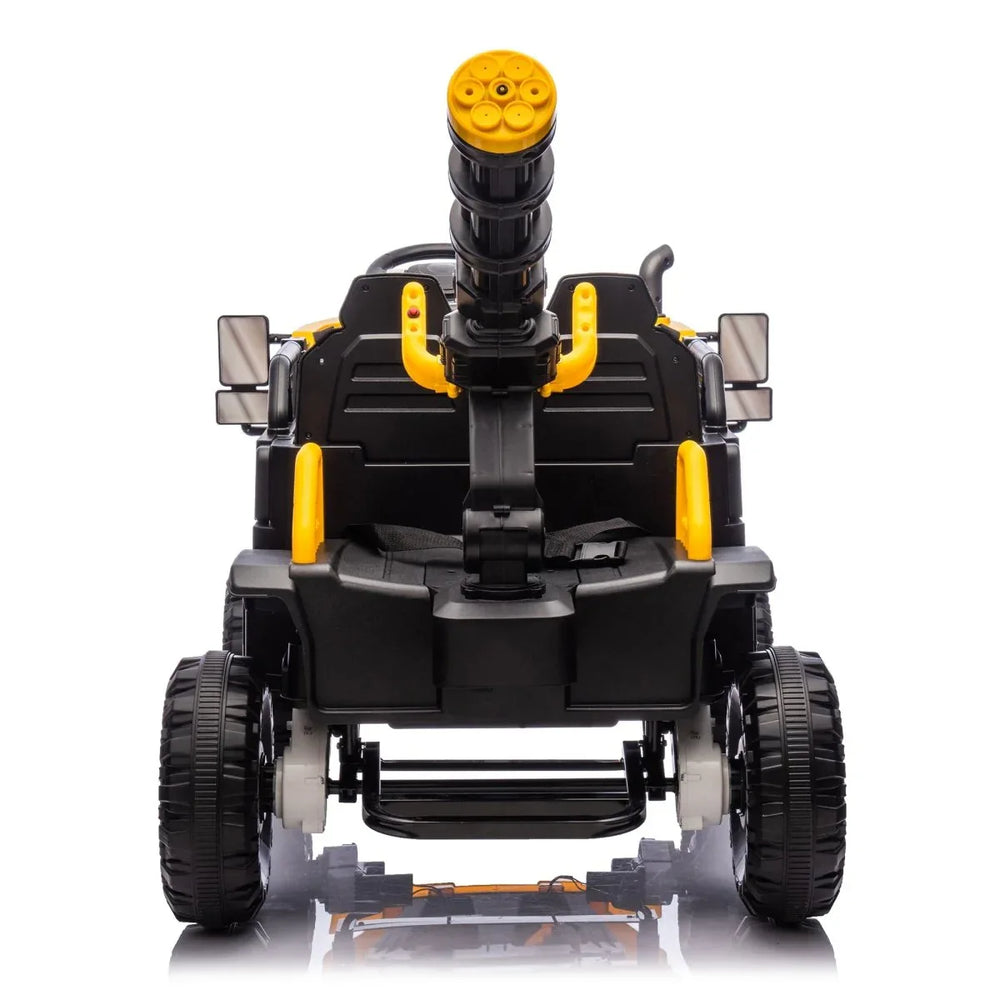 Omega Lifestyles kids electric ride-on car features a spacious 3-seat design, powerful 4-motor drive, 4-wheel independent suspension, and parental remote control for safe fun. Includes built-in water gun, Bluetooth MP3 player, and adjustable 3-speed settings, perfect for active kids ages 3-8.