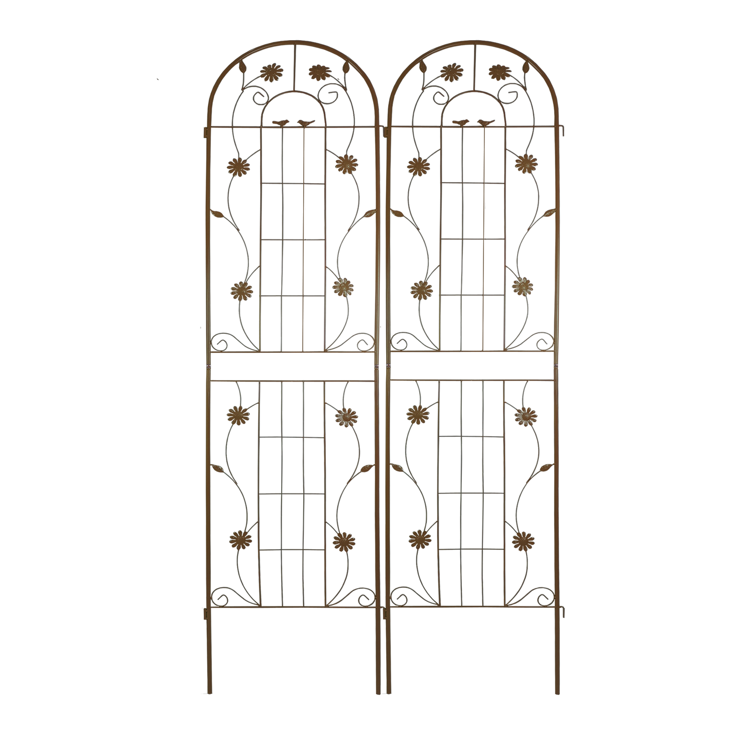 Support your climbing plants with this 2 pack of rustproof metal garden trellises, designed to add both function and French-inspired style to your outdoor space. Standing 86.7 inches (220 cm) tall and 19.7 inches (50 cm) wide, these durable iron trellises provide a sturdy framework for vines, flowers, and vegetables to flourish vertically. The powder-coated, galvanized metal resists rust and weather damage, ensuring long-lasting beauty season after season. Pre-cut and pre-drilled for easy assembly by one person, these trellises also feature charming bird, leaves, and flower accents that enhance garden aesthetics. Whether training ivy, roses, cucumbers, or beans, these trellises help promote healthy plant growth while transforming your garden into a stylish sanctuary. Elevate your outdoor planting today with practical and decorative plant supports.