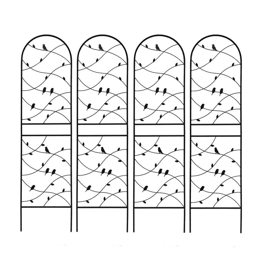 Support your favorite climbing plants and add vertical interest to your outdoor space with this 4 pack of metal garden trellises. Each trellis stands 71 inches tall and spans 19.7 inches wide, providing ample height for vines like ivy, morning glory, clematis, and beans to flourish. Crafted from sturdy iron with a rustproof powder coating, these trellises ensure long-lasting durability and weather resistance. Their sleek black finish blends seamlessly into any garden while offering versatile use—as individual supports or combined to create screens or garden corners. Pre-cut and pre-drilled for quick, easy assembly by one person, they deliver reliable support and stylish garden décor in one. Elevate your gardening experience and promote healthy plant growth with these functional and attractive trellises today.