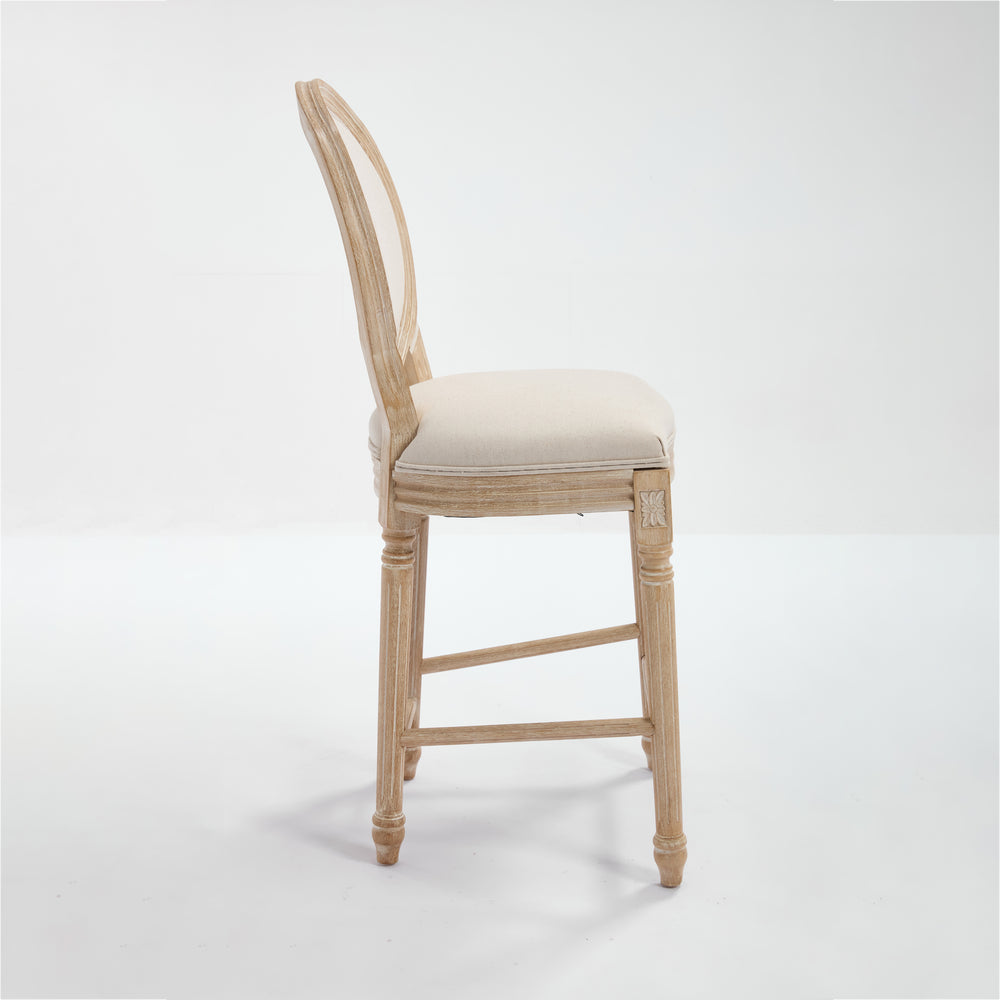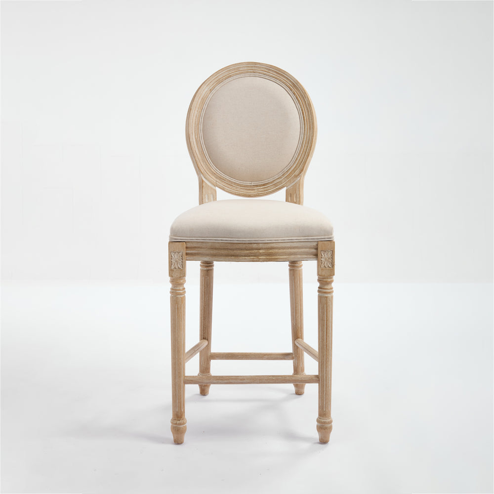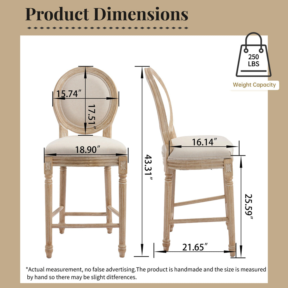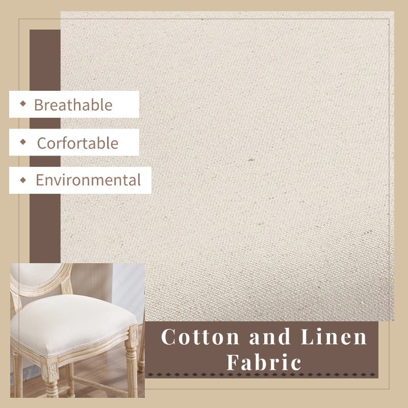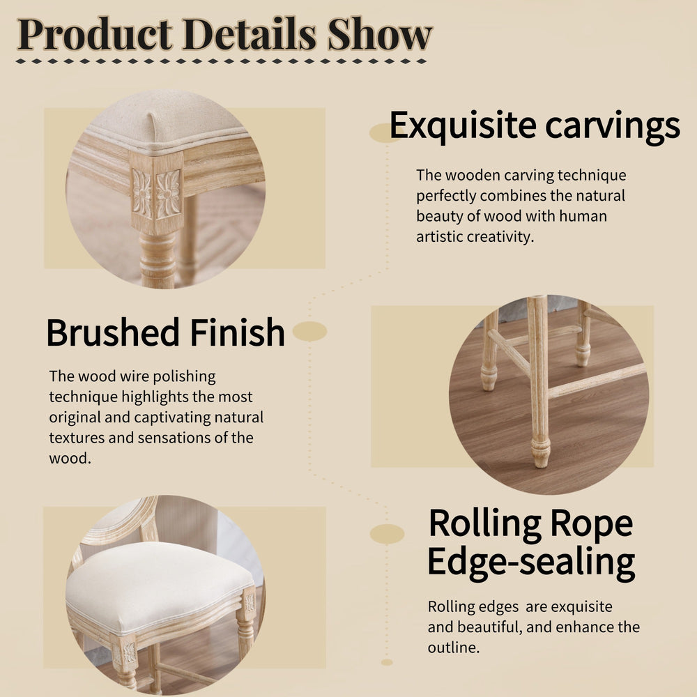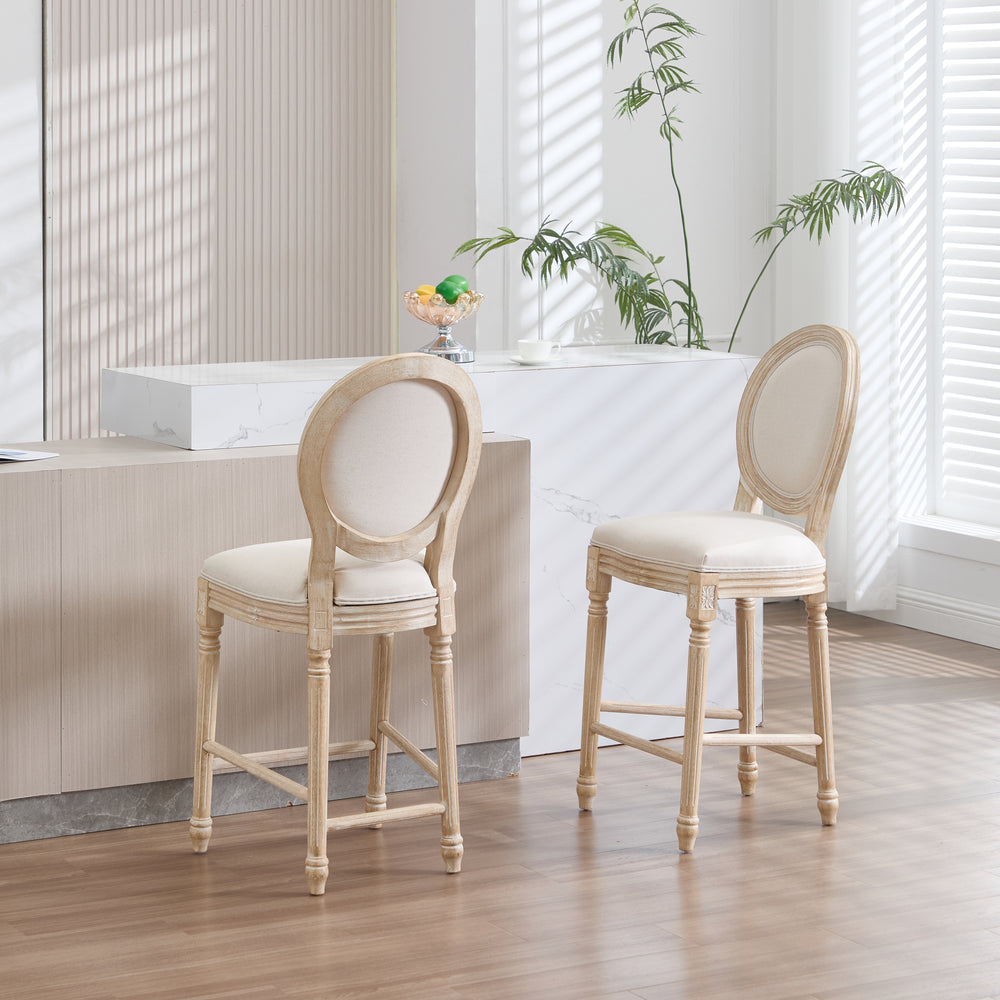 Elevate your living room, kitchen, or restaurant seating with this exquisite set of two French Country 26-inch height bar chairs. Featuring a round back upholstered in high-quality cotton and linen, these chairs offer exceptional comfort and durability. The solid wood frames provide sturdy support, while artistic wire drawing and intricate carving techniques add retro charm and refined detail to your space. Designed for easy disassembly, these chairs save space and simplify transport, making them perfect for both home and professional use. The soft sponge-padded backrest ensures all-day comfort, making every seating experience relaxing and stylish. Add a touch of classic sophistication to your décor and enjoy practical elegance daily. Upgrade your seating today.