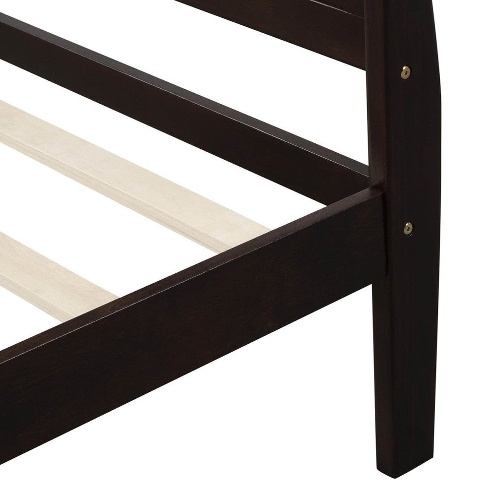 Elevate your bedroom with this minimalist wood platform bed frame in rich espresso. Crafted from solid wood, this twin-size bed frame combines durability with elegant design to provide a stable and long-lasting foundation for your mattress. The integrated sleigh-style headboard and footboard feature hollow construction that reduces visual heaviness, creating an airy, natural feel that complements any décor. Designed to fit most twin mattresses without the need for a box spring, this platform bed offers convenience and simplicity. With a weight capacity of 200 lbs and easy assembly instructions included, it’s an ideal choice for guest rooms, living rooms, or compact bedrooms. Refresh your space with timeless craftsmanship and practical comfort—make this bed frame yours today.