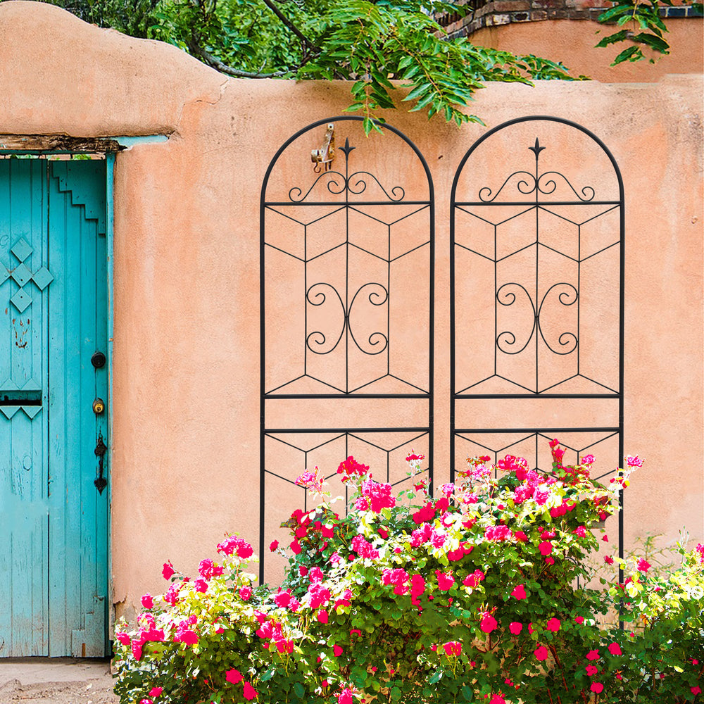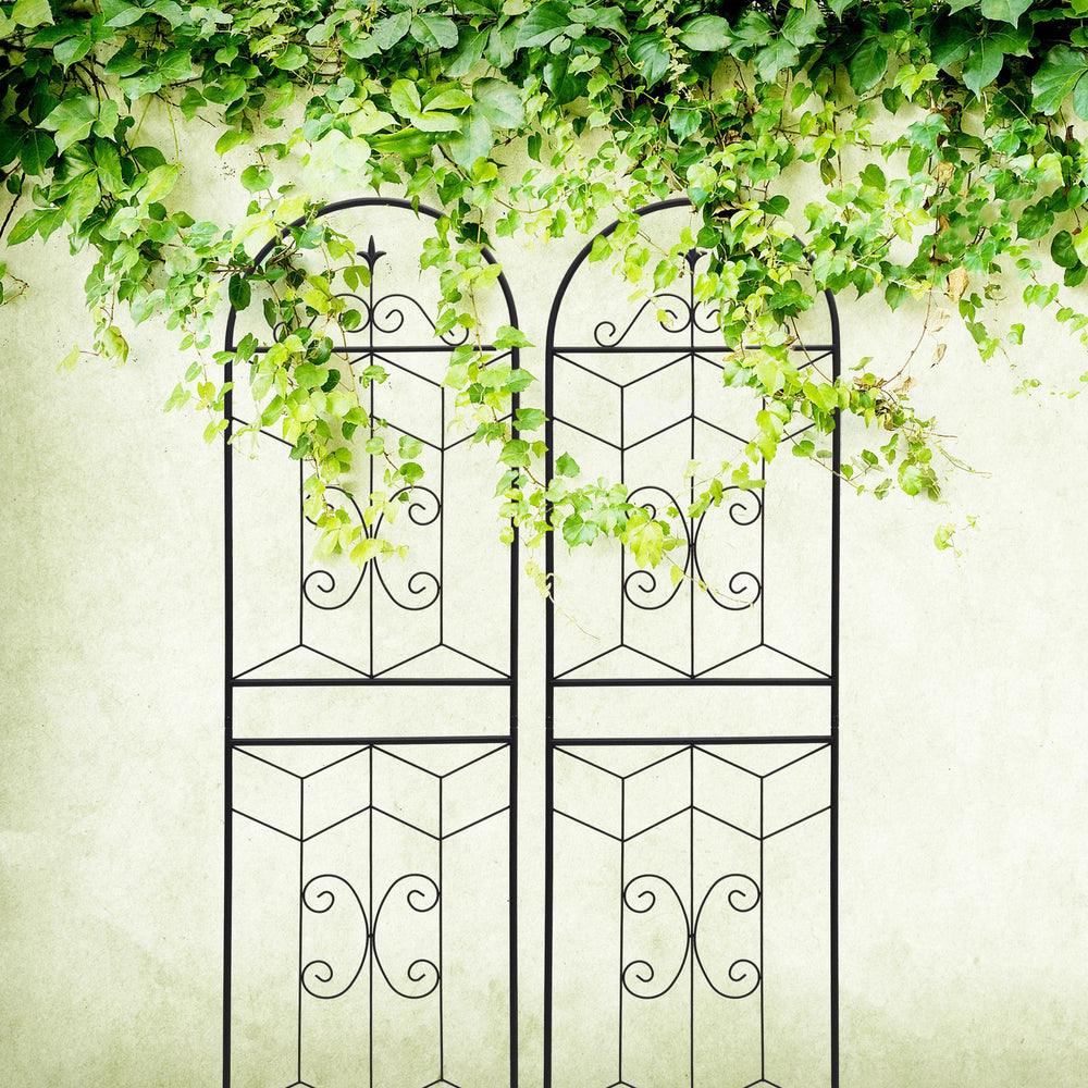 Durable metal garden trellis set features rustproof iron with powder coating for outdoor use, supporting climbing plants like vines and flowers. Easy to assemble with pre-drilled holes, ideal for creating garden screens or plant supports in your outdoor space.