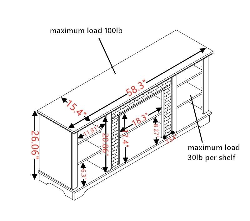 - Spacious Design: Measures 58.31 inches wide × 15.39 inches deep × 26.06 inches high for ample media placement.