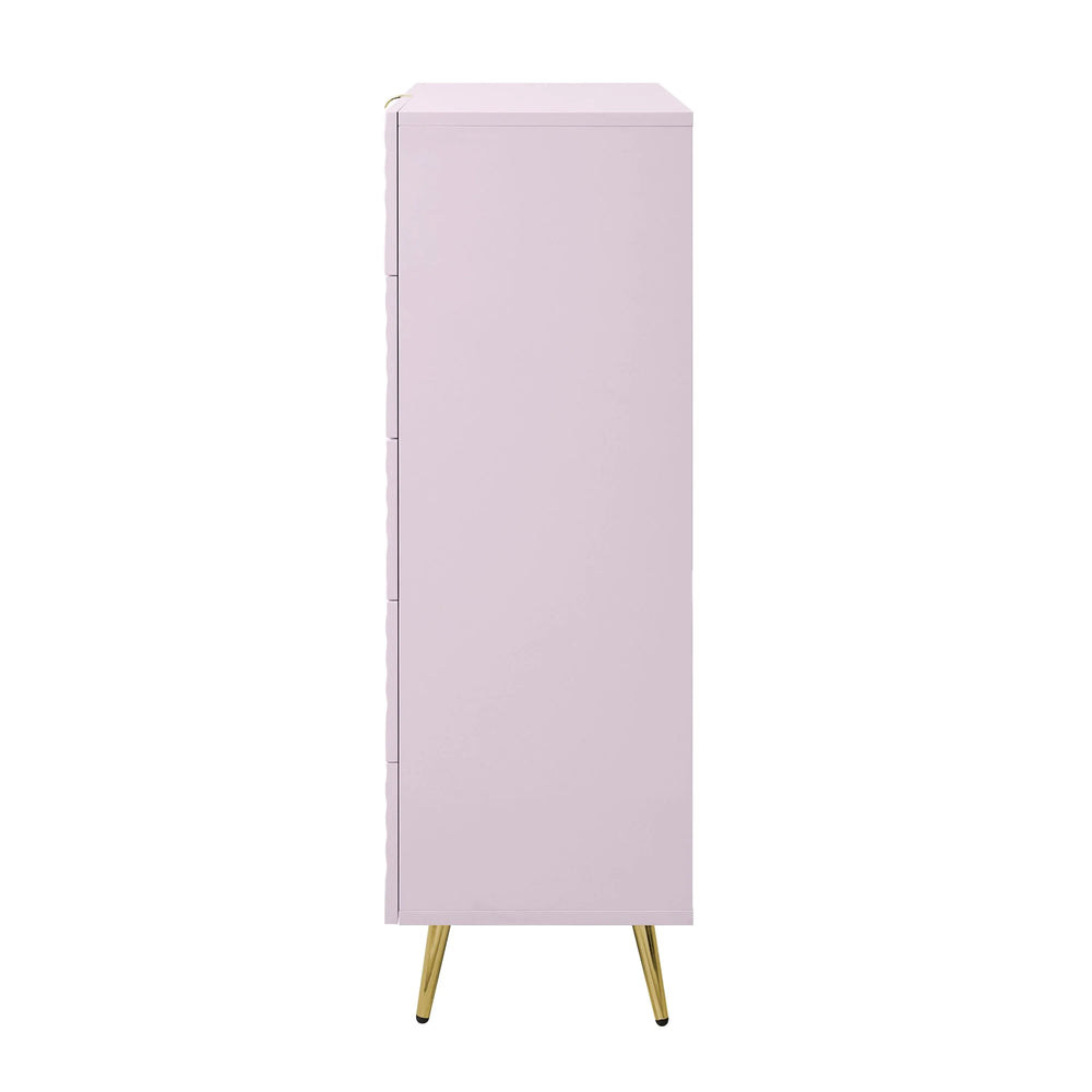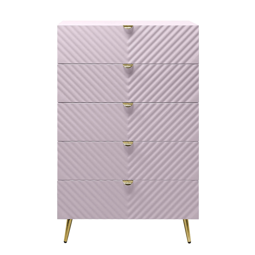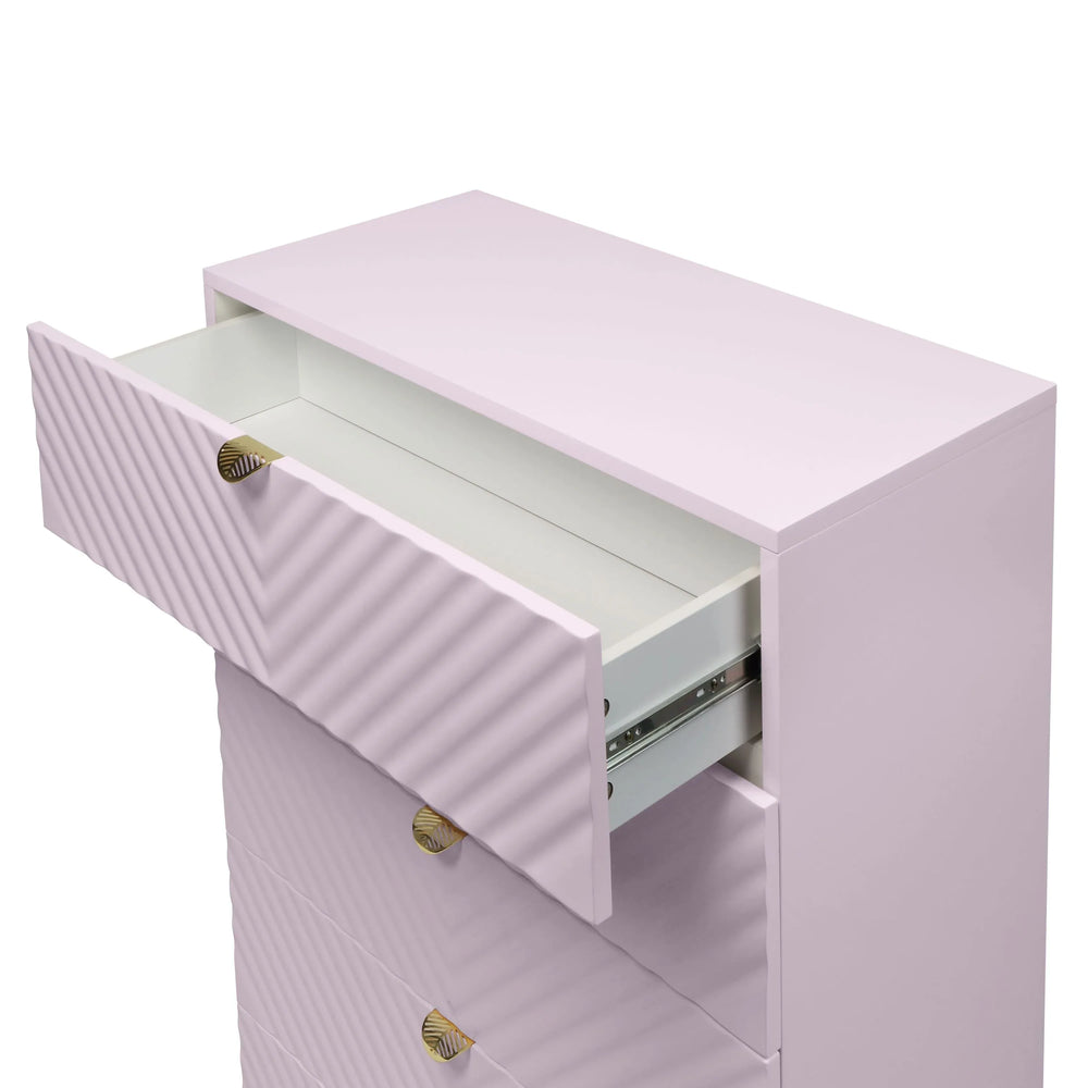 Pink High Gloss Wave Pattern 5-Drawer Chest