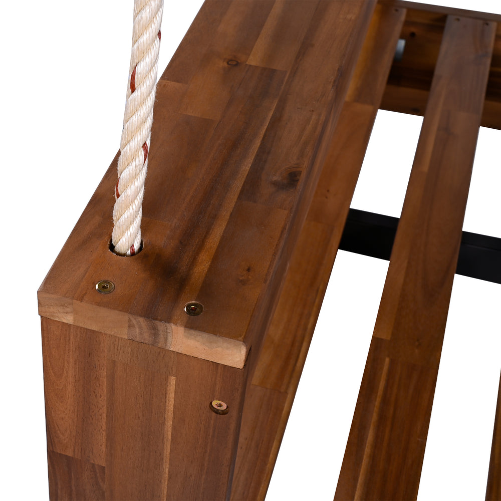 Twin Size Acacia Wood Porch Swing Bed With Hemp Ropes