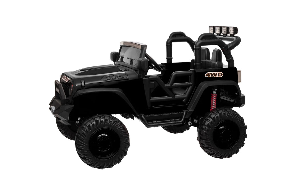 Let your children explore and have fun with this powerful 2-seater ride-on truck designed for big kids ages 1 to 7. Equipped with a robust 24V 9Ah battery and four 200W motors, it delivers stable and reliable performance for extended playtimes of up to 2 hours. The sleek black ABS plastic body offers durable construction, while realistic features like working LED headlights, two openable doors, and horn sounds bring driving excitement to life. Kids can enjoy built-in music or connect their favorite tunes via Bluetooth or USB, making every ride entertaining. Three adjustable speeds and forward/reverse modes ensure fun for various skill levels, while the parent remote control allows safe supervision. With comfortable seating for two and a maximum load of 110 lbs, this powered ride-on truck is the ultimate gift to spark joy and imagination. Elevate outdoor playtime today.