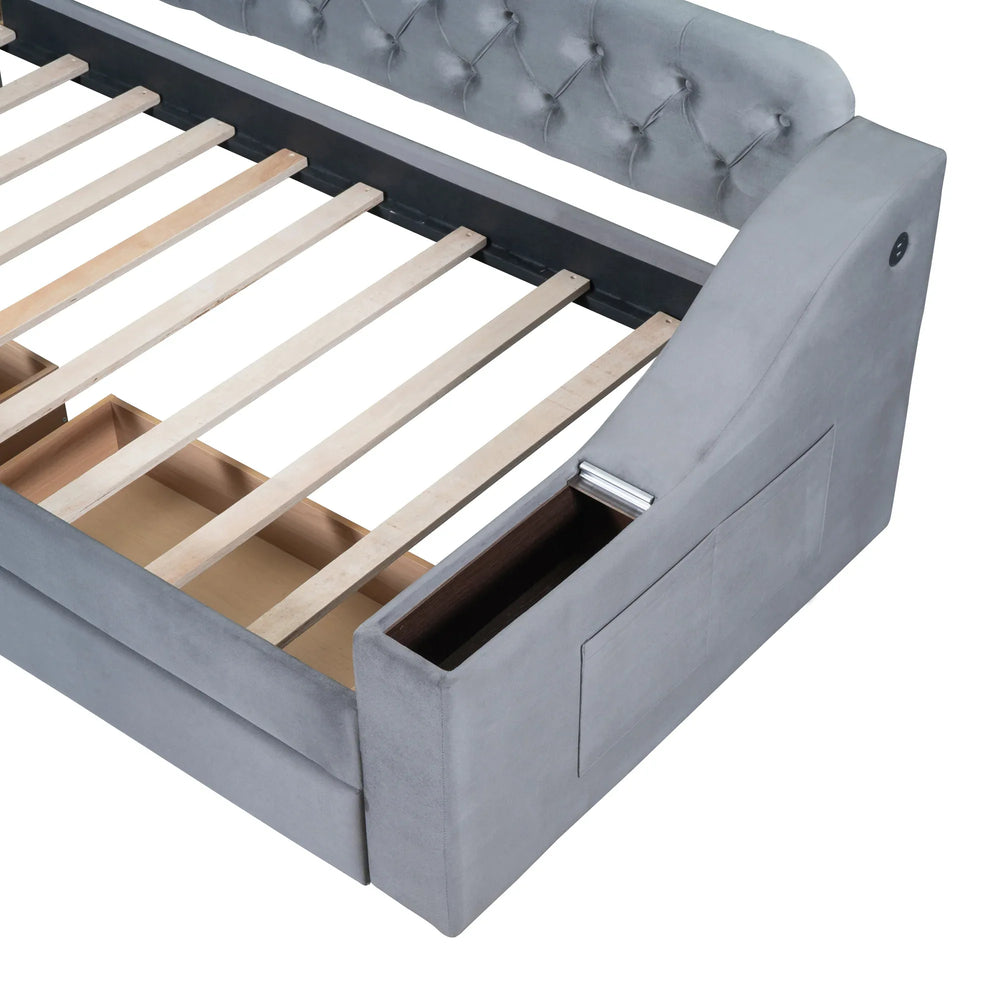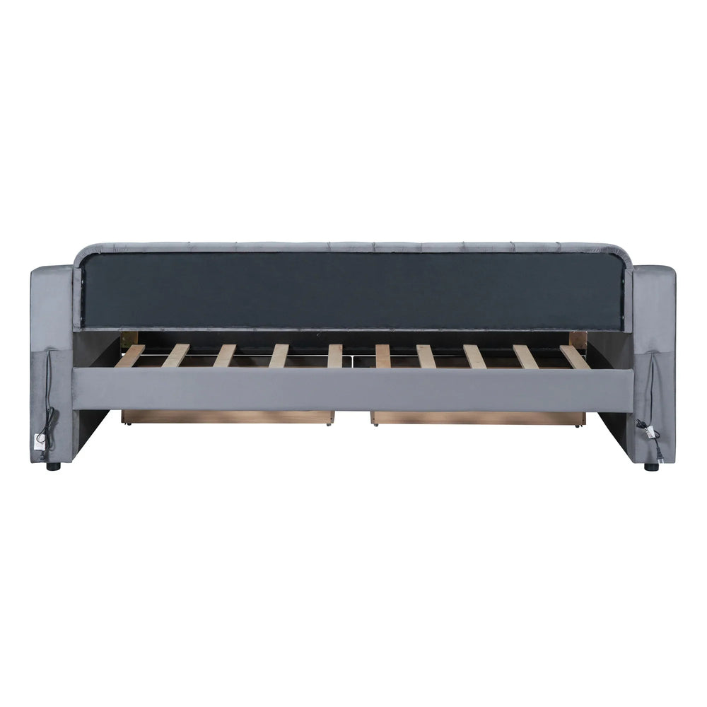 Twin Upholstered Velvet Daybed With Storage Drawers USB Ports