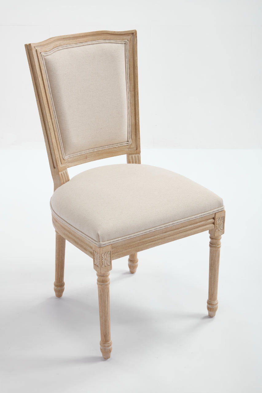 Bring timeless French country charm to your living room, kitchen, or restaurant with this elegant set of 2 upholstered dining chairs. Crafted with a durable solid wood frame, these beige chairs feature high-quality cotton and linen fabric that offers a soft, breathable, and comfortable seating experience. The T-shaped backrest is enhanced with a plush sponge padding, providing ergonomic support for long-lasting comfort during meals or gatherings. Expert wire drawing and carving techniques add exquisite detailing and a refined texture that complements classic and modern decor alike. Designed to be easily disassembled, these chairs save space and are simple to assemble, making them practical for various settings. With their balanced mix of style and durability, these chairs offer lasting value and a cozy seating solution. Elevate your dining experience and create an inviting atmosphere today.