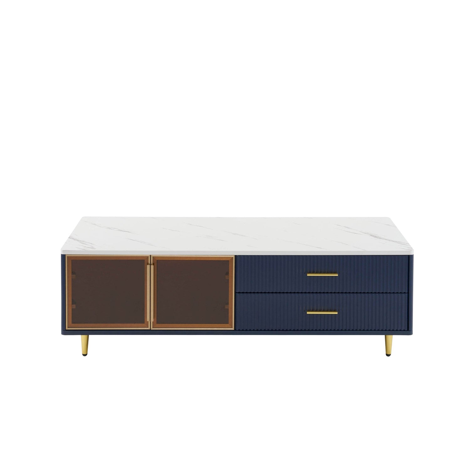 Modern Navy Blue MDF Coffee Table With Drawers Lighting